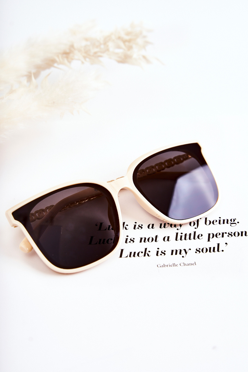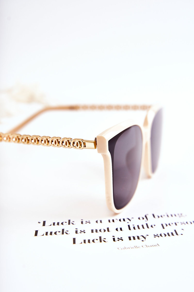 Jedinečné a stylové sluneční brýle budou perfektní pro mnoho situací! Nejen v letní sezóně, ale i v zimní sezóně, kdy se sluneční paprsky odrážejí od sněhu. Tento model byl vyroben z plastu. Chrámy zdobí zlatý ornament v podobě propletených kruhů. Informace výrobce: brýle pohlcují škodlivé UV záření, kategorie 2.
