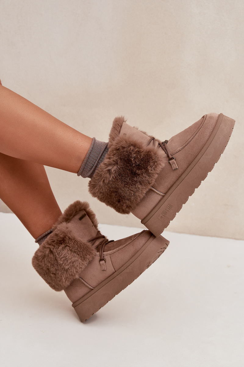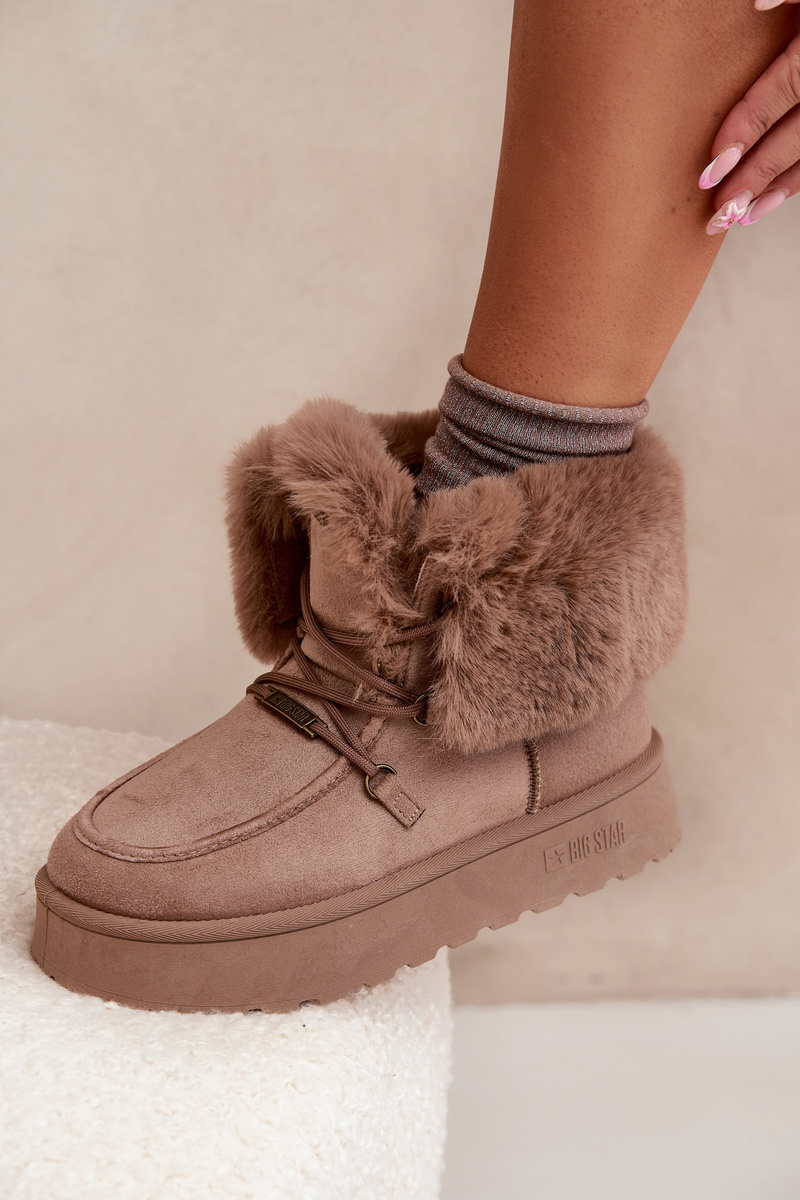 Dámské Sněhule Na Platformě S Kožíškem A Šněrováním Big Star SS274114 Béžové