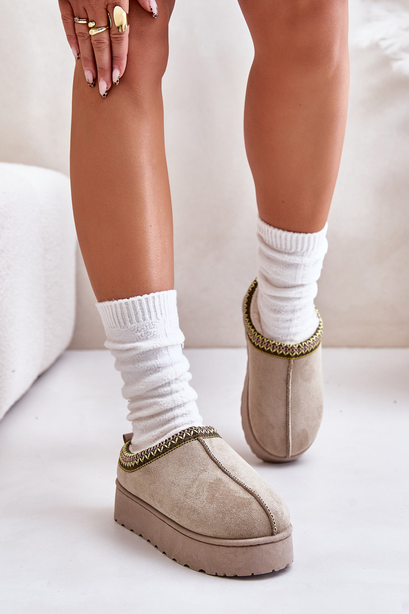 Dámské sněhule s dekorativním lemem. Vyrobené z eko semiše, jsou ideální volbou na chladnější dny. Usazené na platformě, zajišťují nejen styl, ale také pohodlí a izolaci od chladu. Vnitřek bot je zateplen měkkým kožíškem, což zaručuje teplo a pohodlí při nošení. Tyto sněhule jsou kombinací funkčnosti a módního vzhledu, dokonalé na zimní procházky. Při výběru velikosti se řiďte tabulkou velikostí.