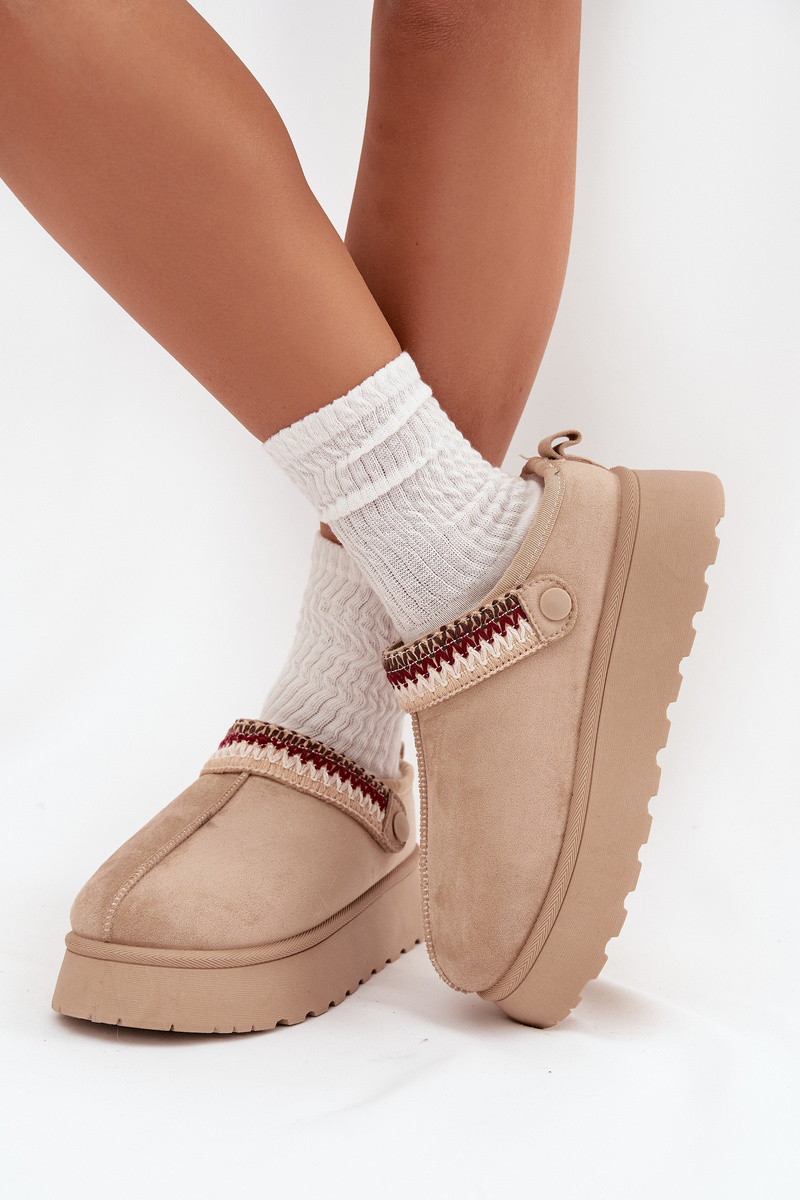 Dámské sněhule nízké s pohyblivým páskem a výšivkou na platformě světle béžové Lyrisse