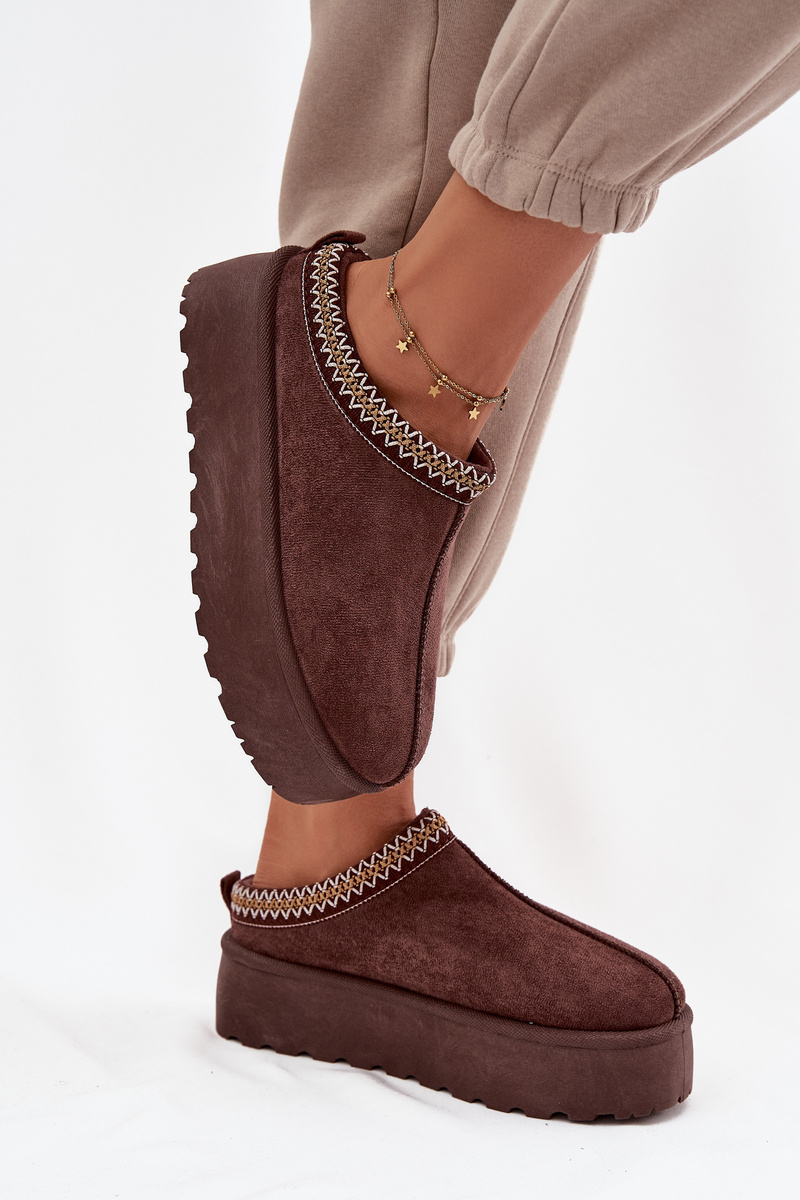 Dámské sněhule vyrobené z eko semiše jsou stylovým a praktickým návrhem na zimní dny. Model je ozdoben jemnou lemovkou ve formě výšivky na horní části obuvi. Umístěny na platformě, zajišťují stabilitu, pohodlí a efektivní izolaci od chladného povrchu. Vnitřek je vyroben z měkké kožešiny, která příjemně obklopuje nohy, zajišťuje teplo a komfort i v mrazivých dnech. Jsou to sněhule, které skvěle spojují módní vzhled s funkčností — ideální na každodenní zimní procházky a výlety. Při výběru velikosti se řiďte tabulkou velikostí. Při výběru velikosti se řiďte tabulkou velikostí.