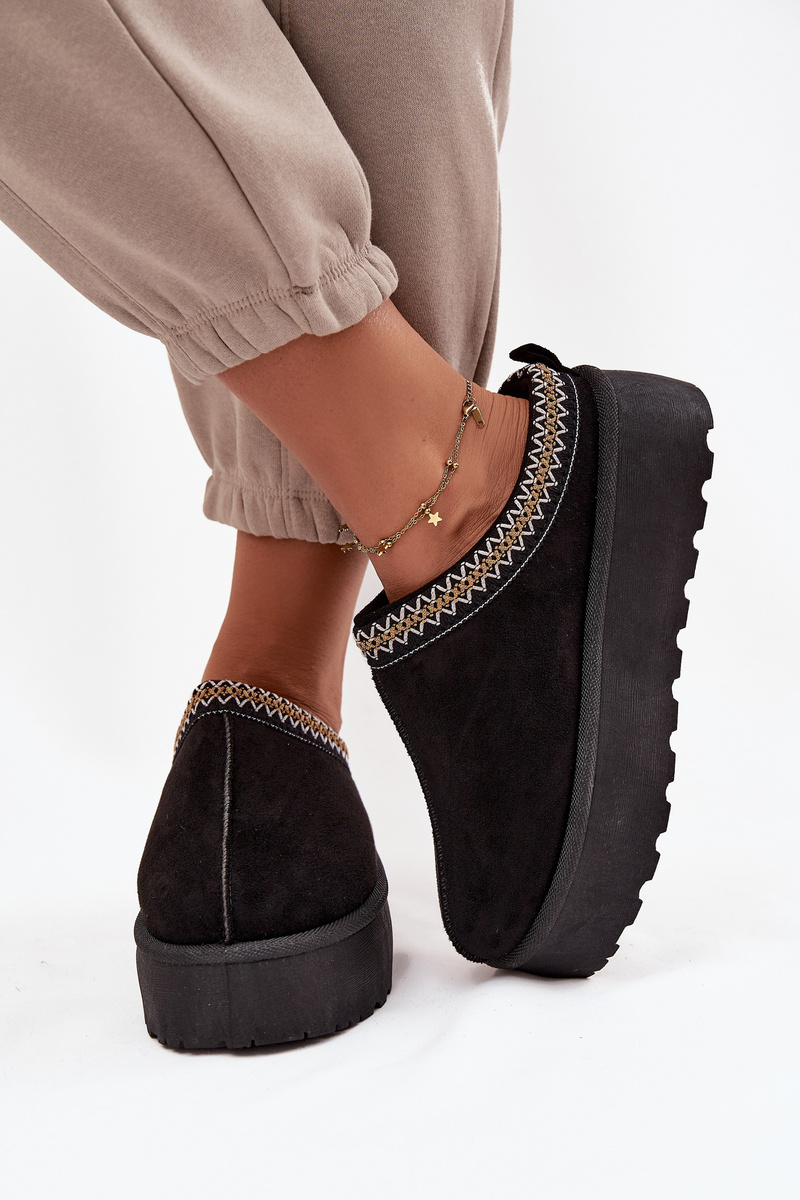 Dámské sněhule vyrobené z eko semiše jsou stylovým a praktickým návrhem na zimní dny. Model je ozdoben jemnou lemovkou ve formě výšivky na horní části obuvi. Umístěny na platformě, zajišťují stabilitu, pohodlí a efektivní izolaci od chladného povrchu. Vnitřek je vyroben z měkké kožešiny, která příjemně obklopuje nohy, zajišťuje teplo a komfort i v mrazivých dnech. Jsou to sněhule, které skvěle spojují módní vzhled s funkčností — ideální na každodenní zimní procházky a výlety. Při výběru velikosti se řiďte tabulkou velikostí. Při výběru velikosti se řiďte tabulkou velikostí.