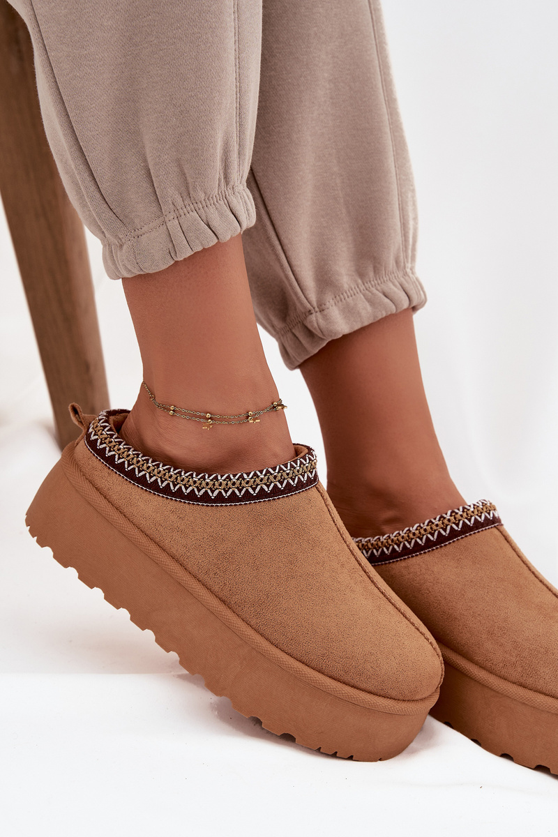 Dámské sněhule vyrobené z eko semiše jsou stylovým a praktickým návrhem na zimní dny. Model je ozdoben jemnou lemovkou ve formě výšivky na horní části obuvi. Umístěny na platformě, zajišťují stabilitu, pohodlí a efektivní izolaci od chladného povrchu. Vnitřek je vyroben z měkké kožešiny, která příjemně obklopuje nohy, zajišťuje teplo a komfort i v mrazivých dnech. Jsou to sněhule, které skvěle spojují módní vzhled s funkčností — ideální na každodenní zimní procházky a výlety. Při výběru velikosti se řiďte tabulkou velikostí. Při výběru velikosti se řiďte tabulkou velikostí.