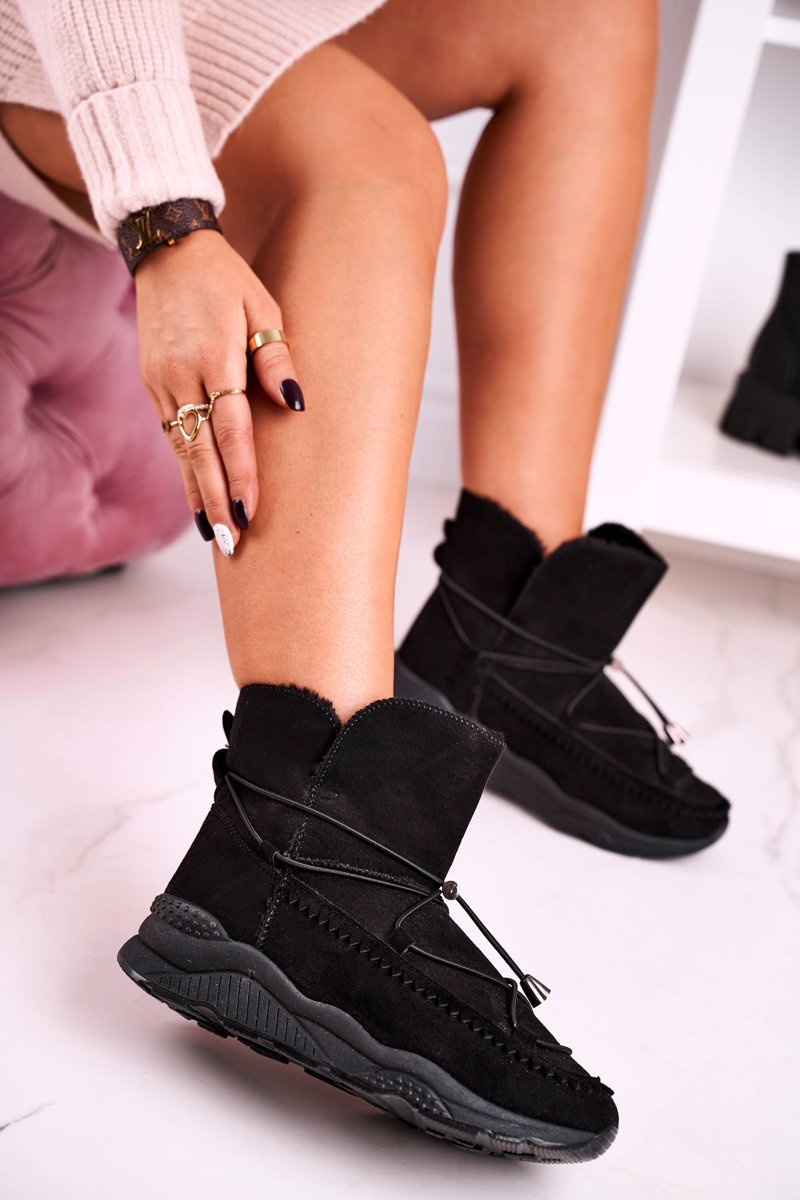 Dámské Sněhule Sportovní Zateplené Kožešinou Černé Synte