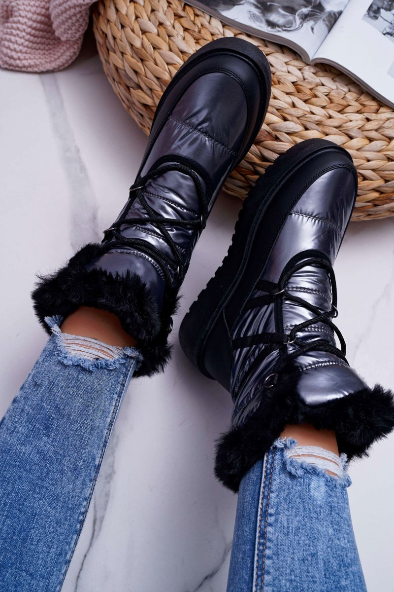 Dámské Sněhule Zateplené Kožešinou Stříbrné Calma