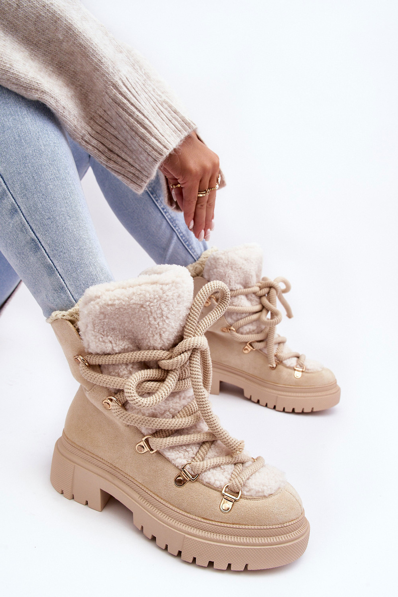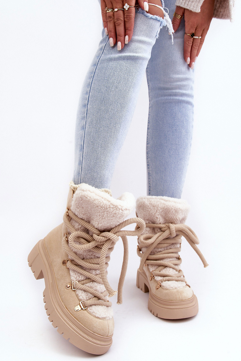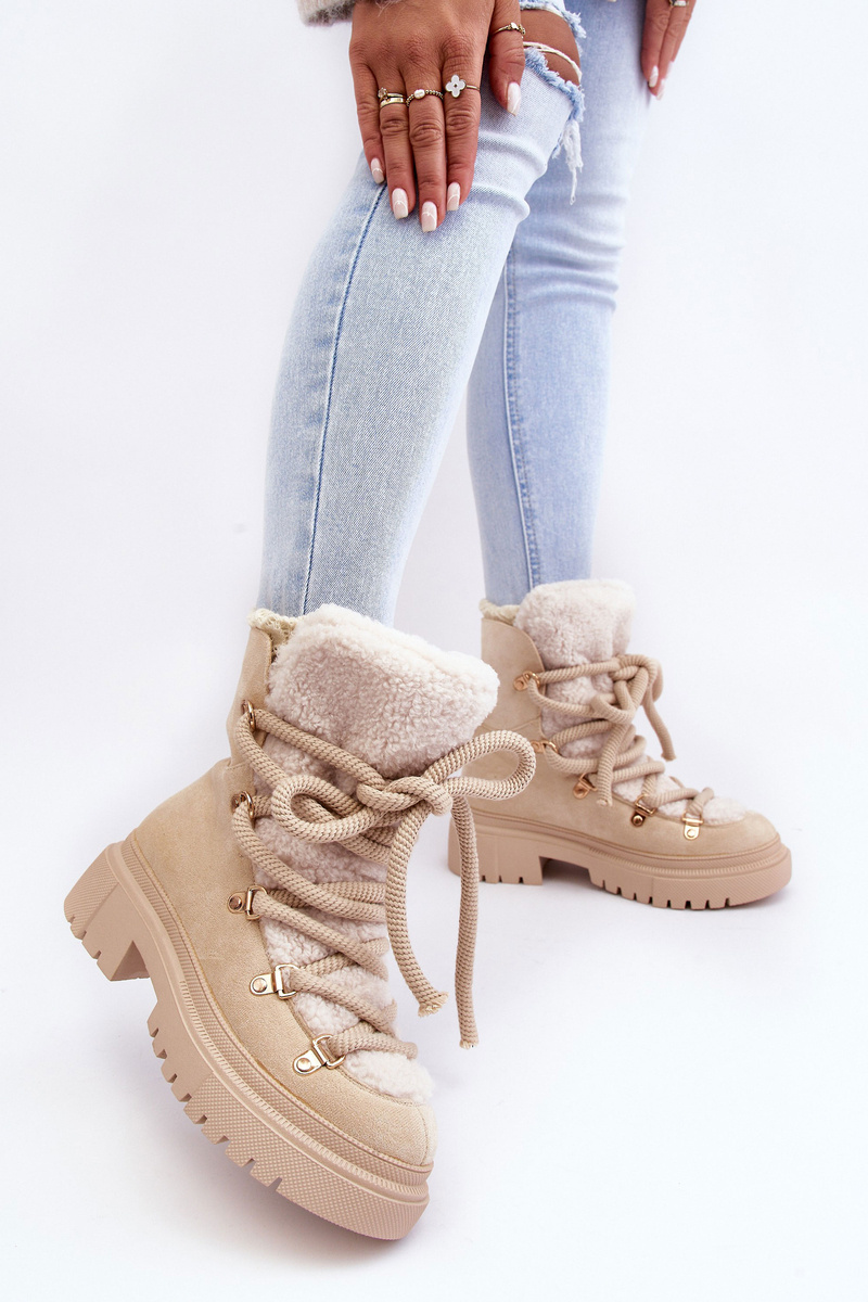 Dámské zimní boty— sněžnice se skvěle hodí na chladnější dny! Vyrobeno z eko semiše. Osazeno plochou podrážkou a platformou. Špička zepředu je zateplena hebkým kožešinovým límcem. Vnitřek je zateplen kožešinou. Při výběru velikosti se řiďte tabulkou velikostí.