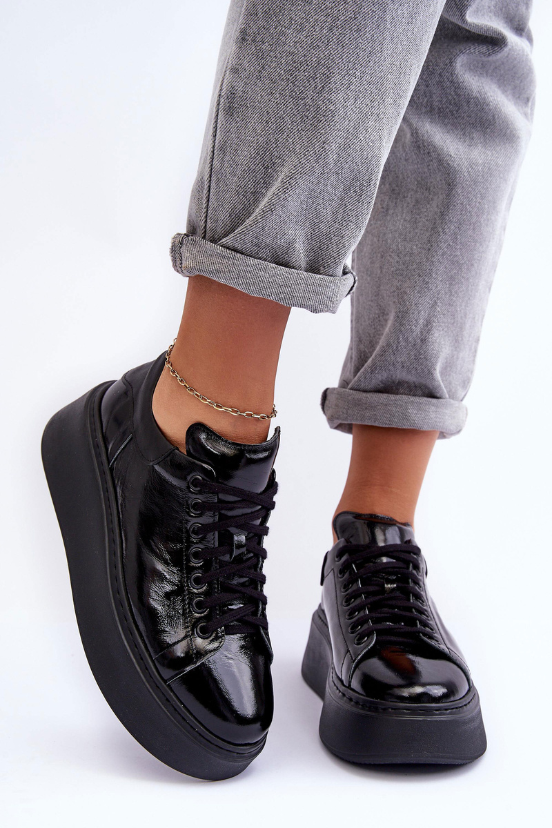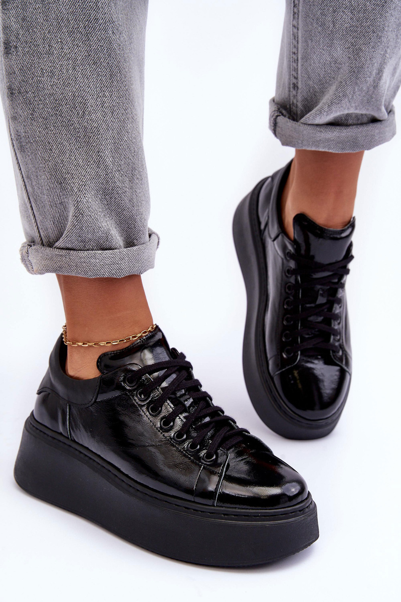 Dámské sportovní boty lakování na platformě černé Lemar 10150