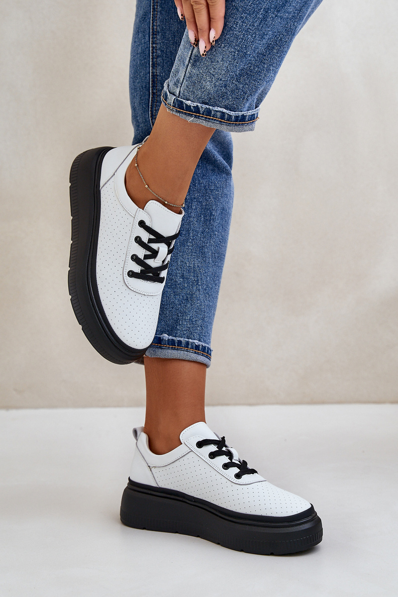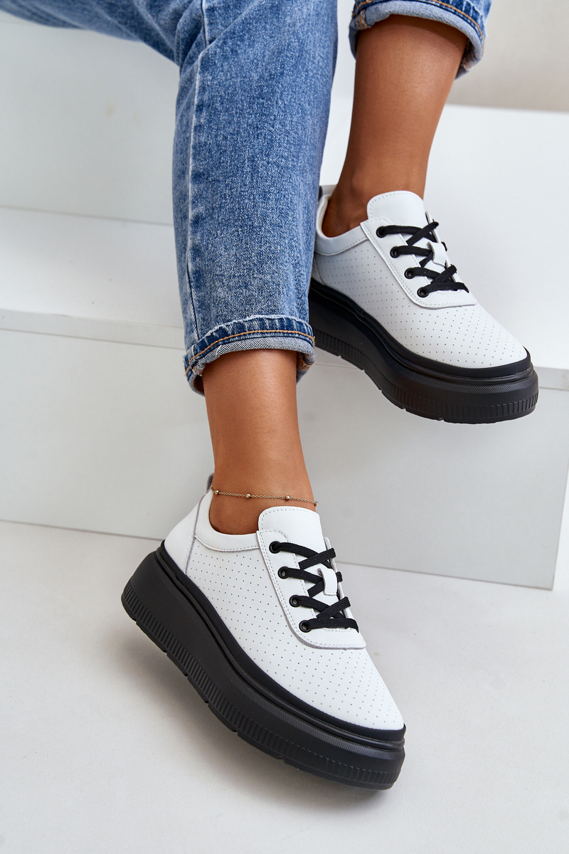 Dámské Sportovní Boty Na Platformě Přírodní Kůže Bílé 41470 Vinceza