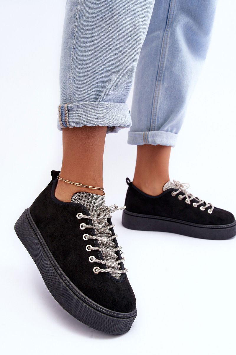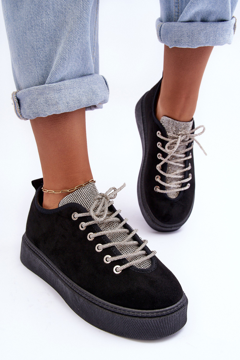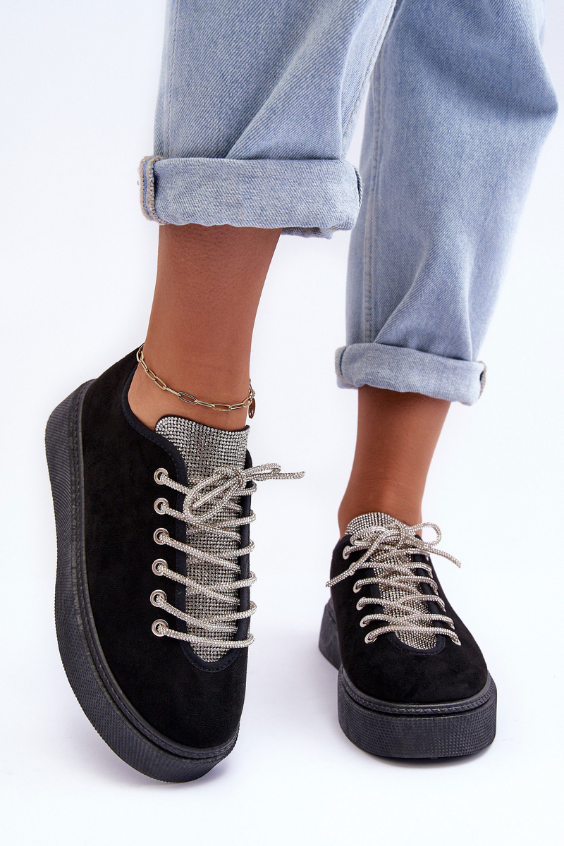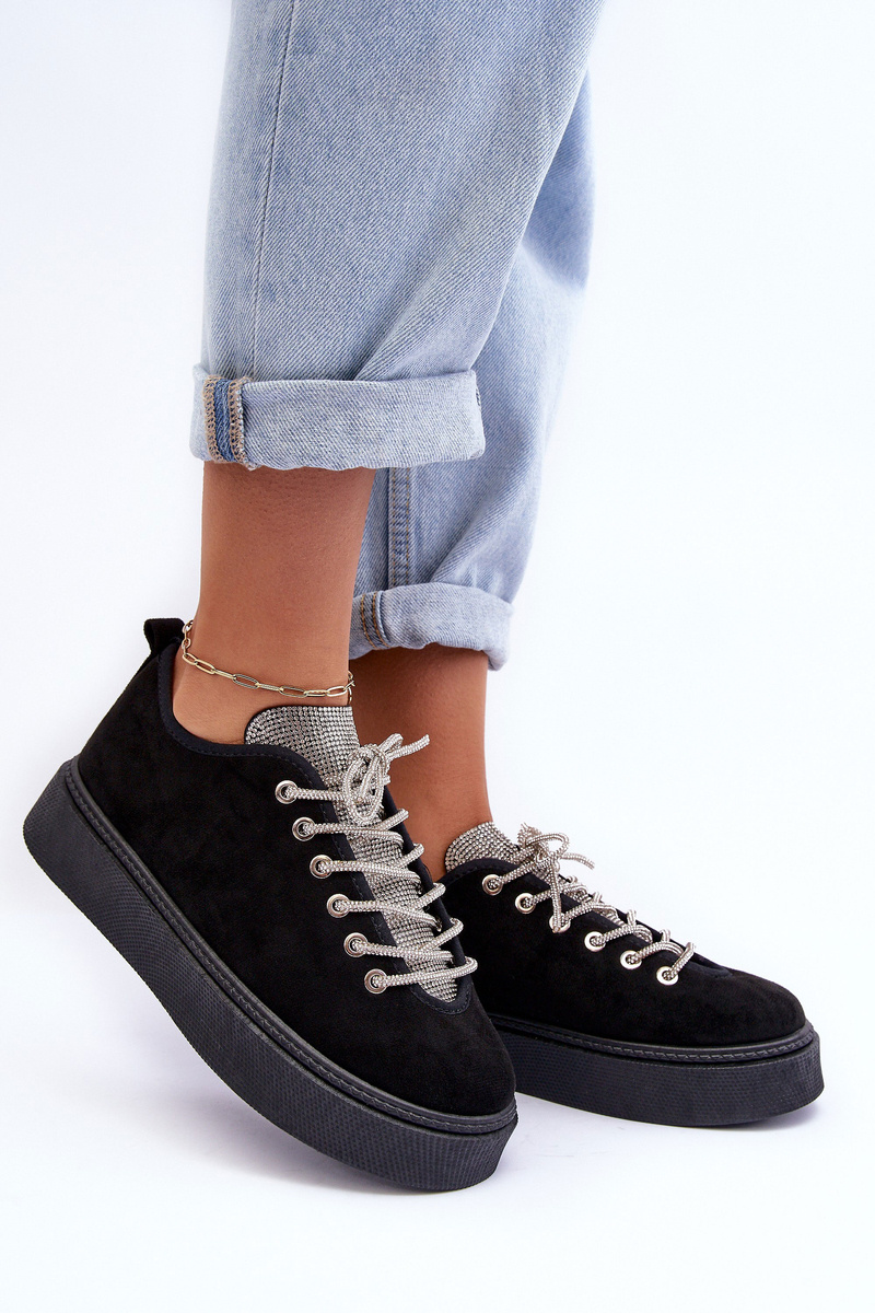 Stylové dámské sportovní boty vyrobené z eko zaměření. Ozdobené malými, lesklými kamínky. Špičky zaoblené. Měkká vložka zajišťuje pohodlí při používání. Tento model by měl být ve vašem šatníku! Při výběru velikosti se řiďte tabulkou velikostí.