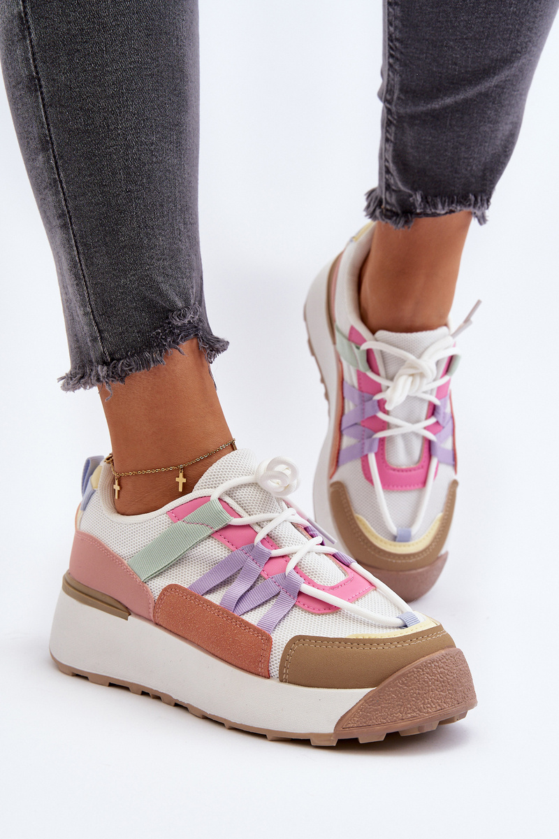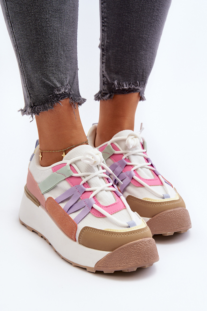 Dámská sportovní obuv vyrobená z kombinace textilního materiálu a ekologické kůže. Vsazené na masivní platformě, která jemně zdvihne vaši postavu. Model se šněrováním. Pěnová vložka zajistí pohodlí během nošení. Určitě si je musíte pořídit! Při výběru velikosti se řiďte tabulkou velikostí.