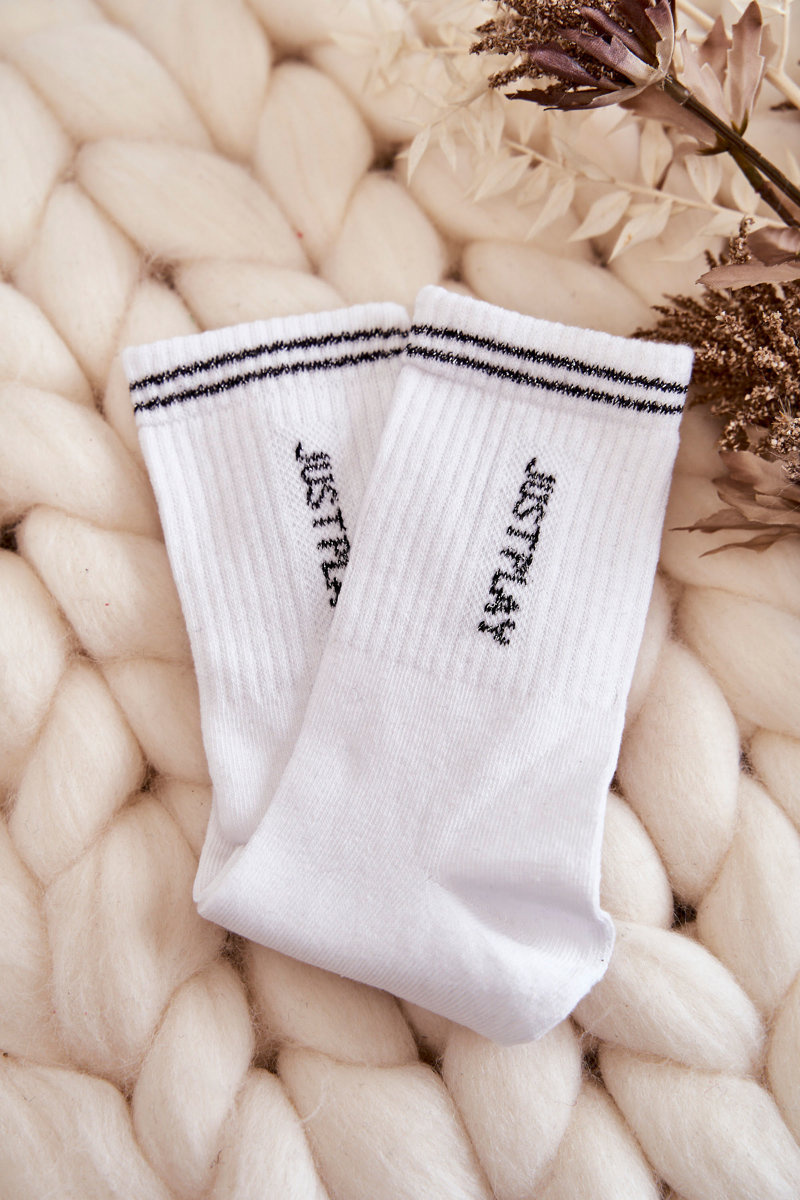 Dámské sportovní ponožky Vertikální nápis Just Play Bíle