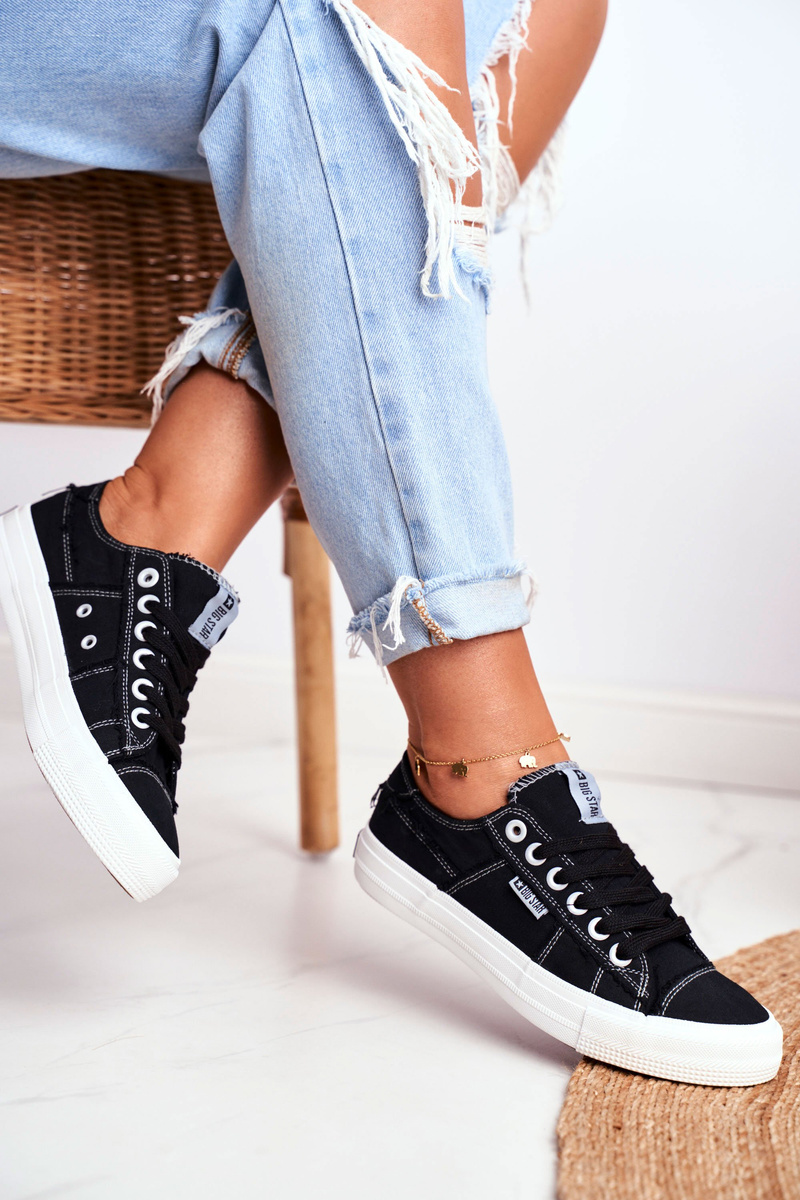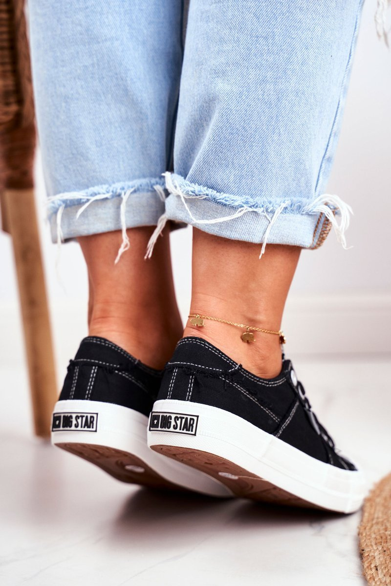 Nadčasové šněrovací tenisky Big Star! Horní i vnitřní část boty byla vyrobena z vysoce kvalitní tkaniny, která byla jemně stárnuta. Díky tomuto ošetření si boty získaly trochu více charakteru a určitě si toho všimnou. Protiskluzová podešev zaručuje pohodlí na všech površích. Tenisky jsou ideální pro mnoho každodenních situací. Klasický design v kombinaci s bezprecedentním komfortem je dokonalým receptem na praktické a originální boty. Tenisky jsou na boku zdobeny logem Big Star, které najdete také za patou. Při výběru velikosti prosím navrhněte graf velikosti.