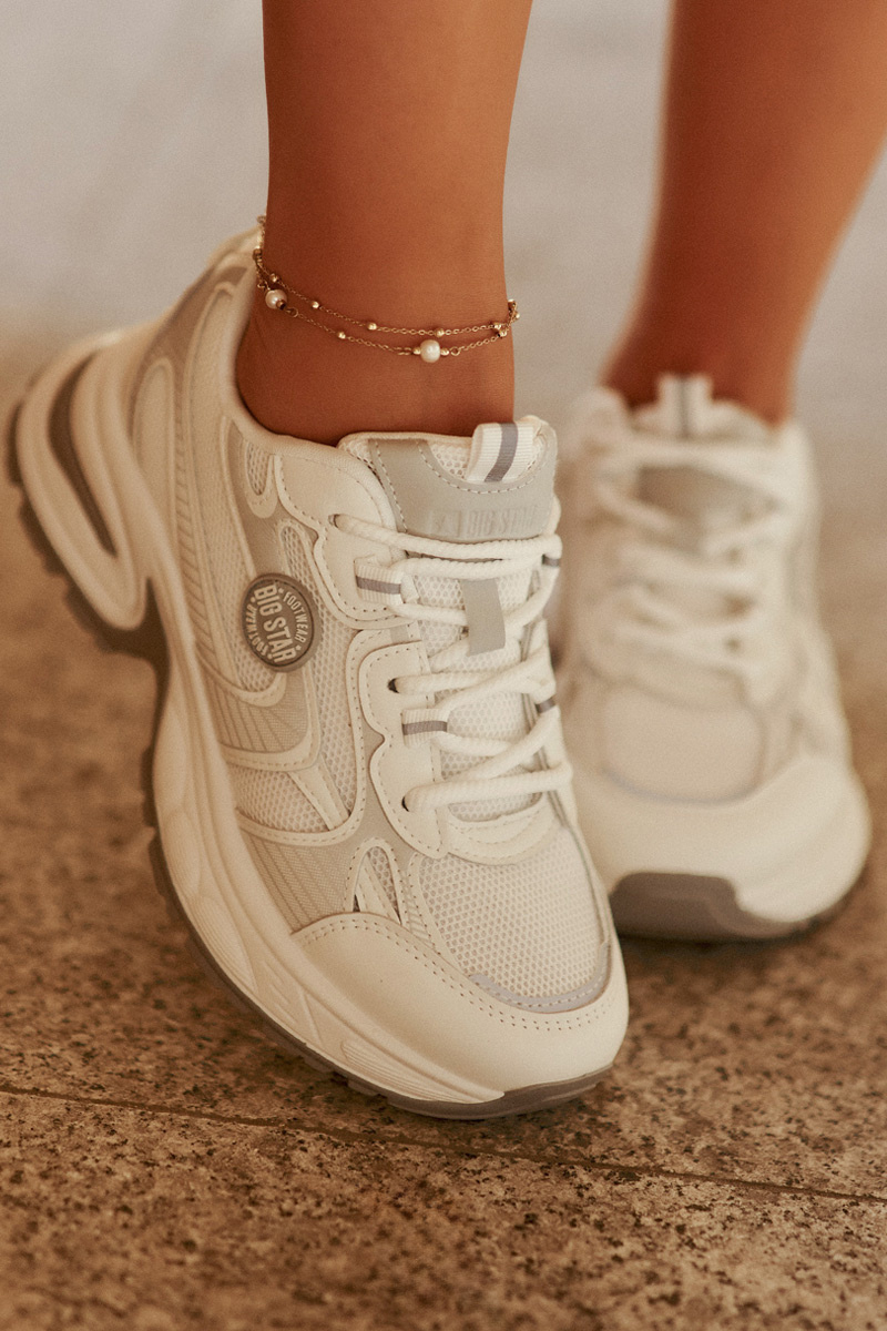 Dámské sneakersy značky Big Star, vyrobené z kombinace eko kůže a textilního materiálu, jsou skvělou volbou pro ty, kteří hledají jak styl, tak pohodlí. Jejich masivní podešev zajišťuje vynikající stabilitu a zaoblené špičky garantují pohodlí a volnost pohybu. Díky měkké stélce potažené materiálem nabízejí boty skvělou amortizaci, což z nich činí ideální volbu na každý den. Tyto sneakersy jsou perfektní volbou pro každodenní stylizace, kombinující funkčnost s módním vzhledem. Při výběru velikosti se řiďte tabulkou velikostí.