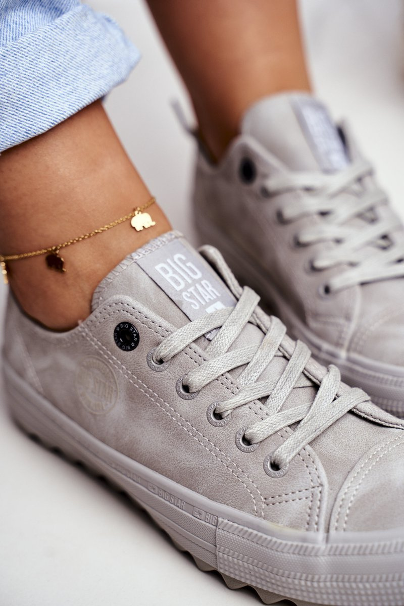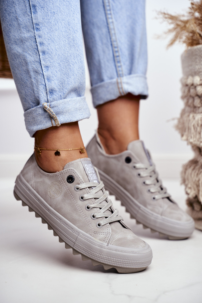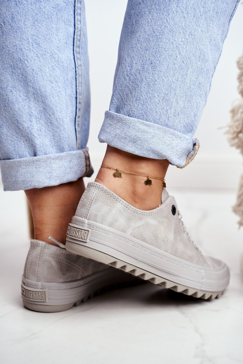 Nadčasové tenisky BIG STAR! Klasický design v kombinaci s bezprecedentním komfortem je dokonalým receptem na praktické a originální boty. Silná podrážka „traktoru“ vypadá úžasně a navíc zaručuje bezpečnost na jakémkoli povrchu. Logo značky Big Star na svršku, jazyku a kolem podešve Při výběru velikosti prosím navrhněte tabulku velikostí.
