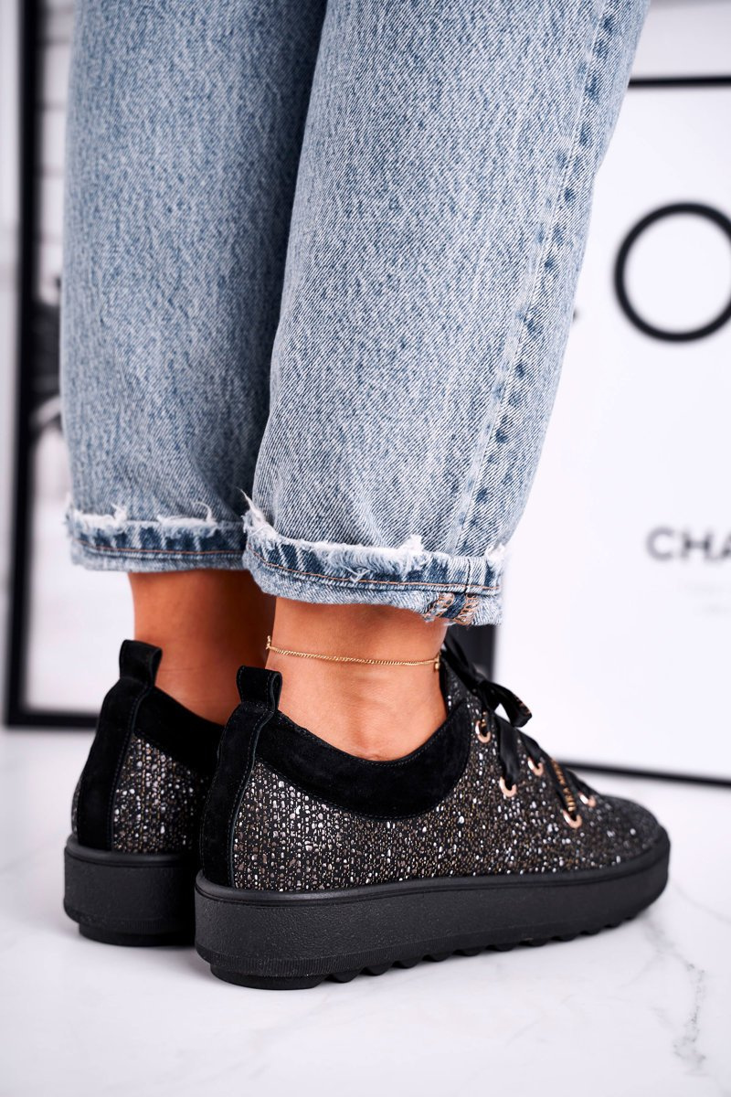Dámské tenisky elegantní kožené Laura Messi Černé 2045
