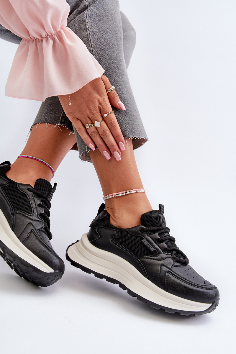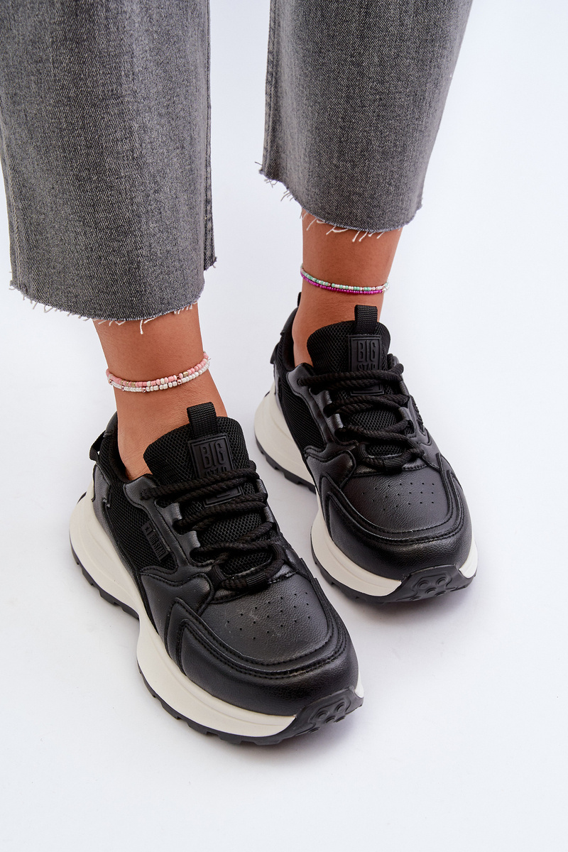 Dámské tenisky od značky Big Star. Vyrobené z eko kůže a textilu. Nastaveno na tlusté podešvi. Tento model má vložku HI POLLY SYSTEM, která pochází z recyklace, je odolná proti opotřebení a deformacím a absorbuje vlhkost. Sladte je se svými oblíbenými styly a užívejte si módní vzhled a pohodlí po celou sezónu!