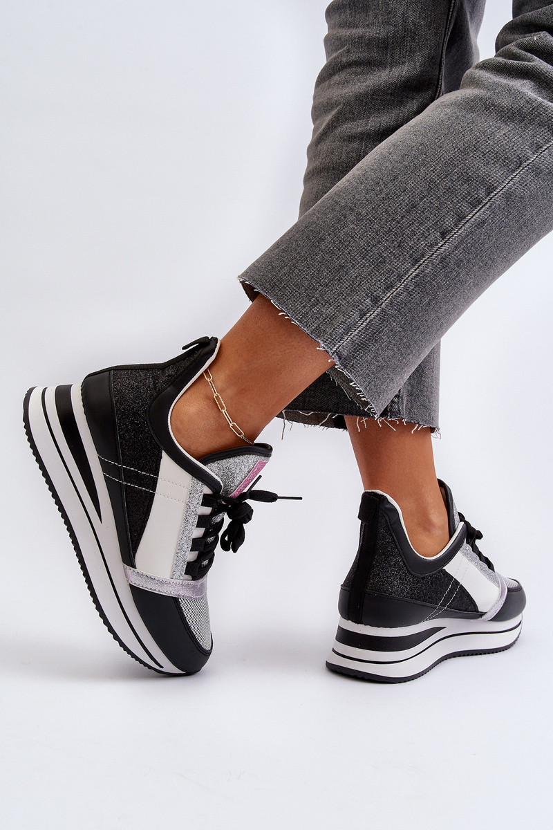 Dámské tenisky na klíně a platformě s flitry černé Rafani