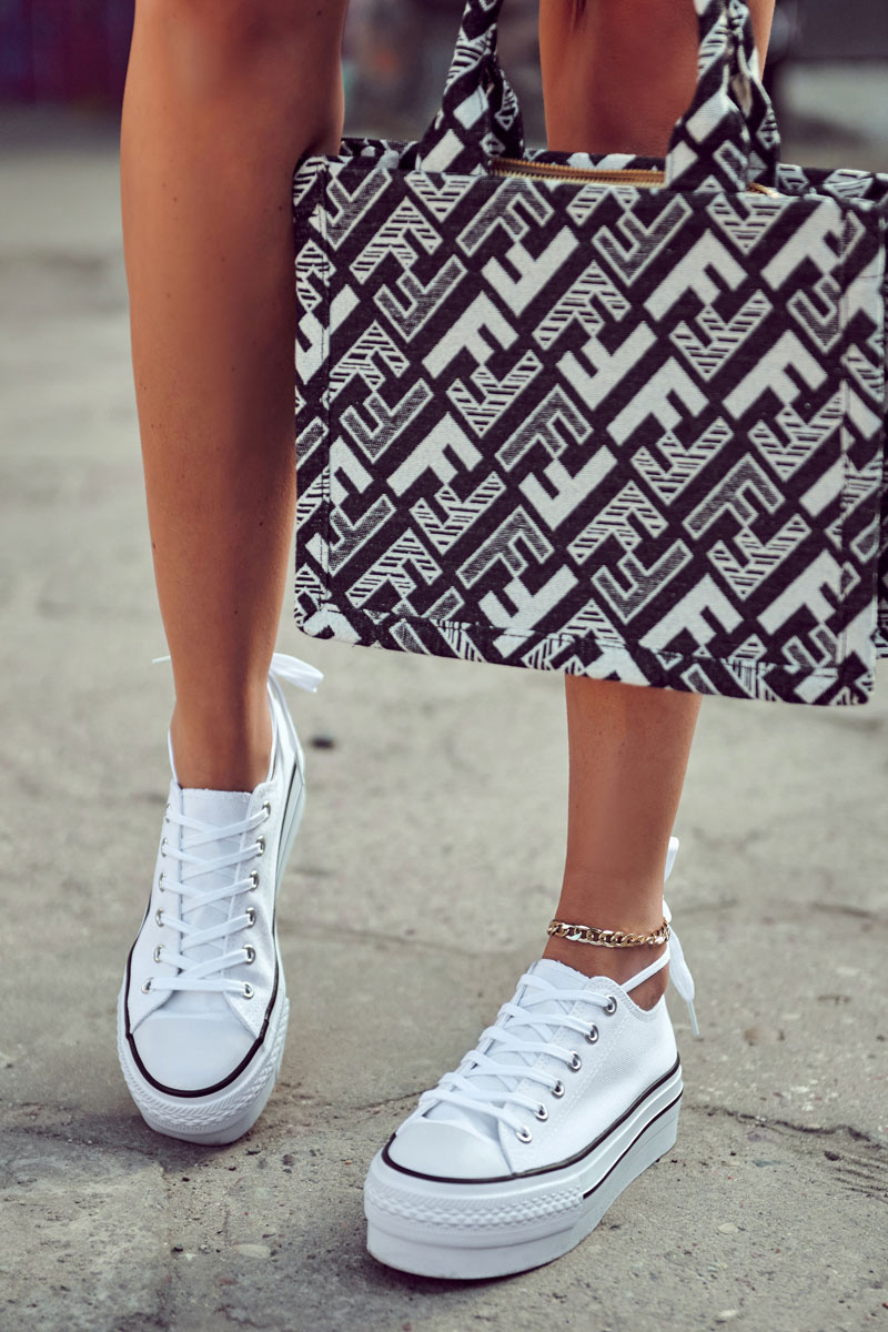 Klasické tenisky v nové verzi! Byly namontovány na masivní plošině z pryžového materiálu. Boty mají protiskluzovou podrážku. Kulatá špička, vyztužená pryžovým materiálem. Klasicky vázaný model. Tenisky by měly být v šatníku každé ženy! Jsou univerzálním a pohodlným doplňkem pro styling. Materiálová vložka zajišťuje pohodlí při používání. Při výběru velikosti použijte tabulku velikostí.