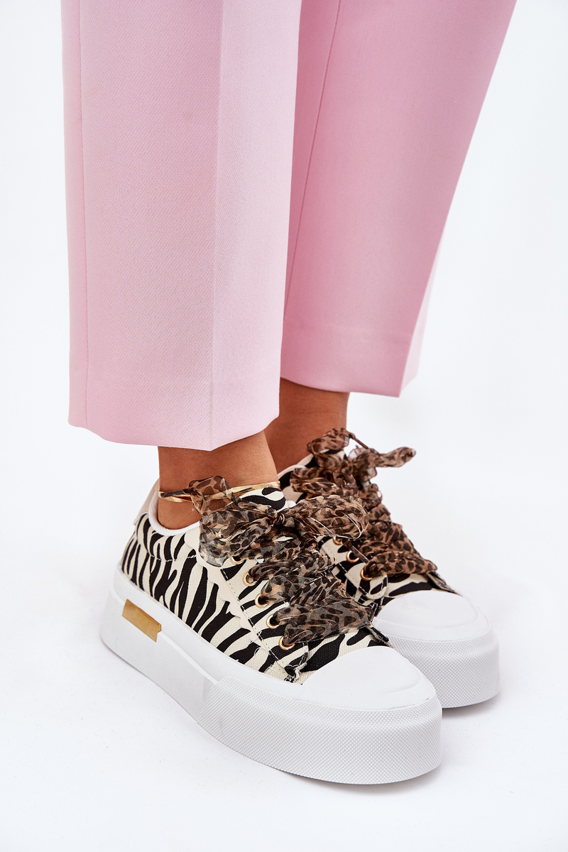 Dámské Tenisky Na Masivní Platformě S Ozdobným Šněrováním Zebra Černobéžové Zidora