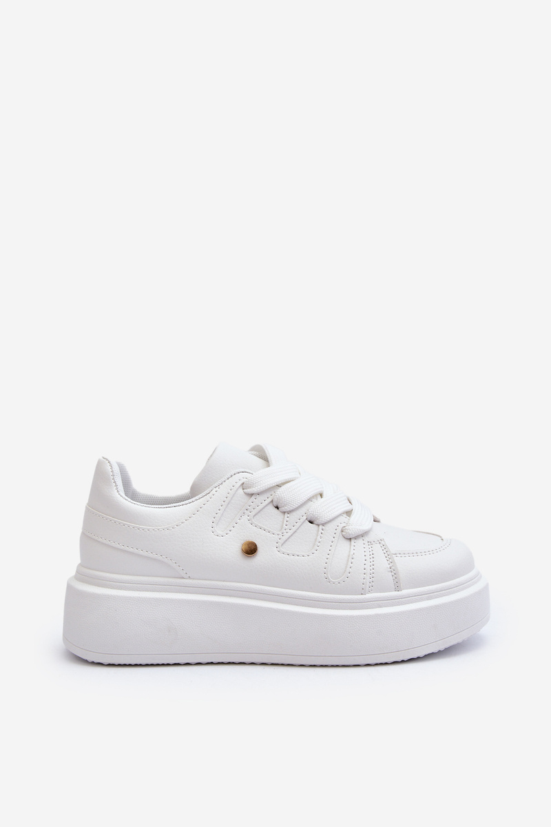 Dámské tenisky vyrobené z ekologické kůže. Umístěné na platformě. Zaoblené špičky. Měkká stélka zajistí pohodlí během používání. Tento střih skvěle doplní styly s kalhotami. Ideální pro každodenní aktivity! Při výběru velikosti se řiďte tabulkou velikostí.