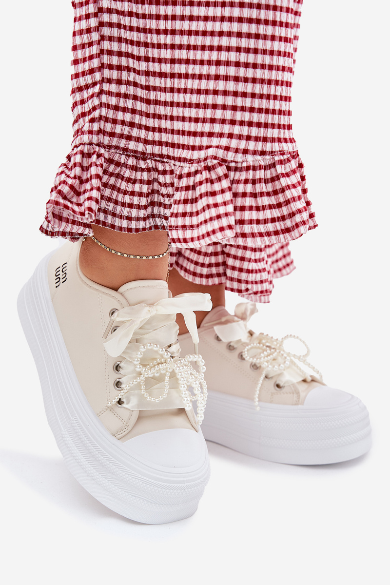 Dámské Tenisky Na Platformě S Dekorativním Šněrováním Béžové Tivora