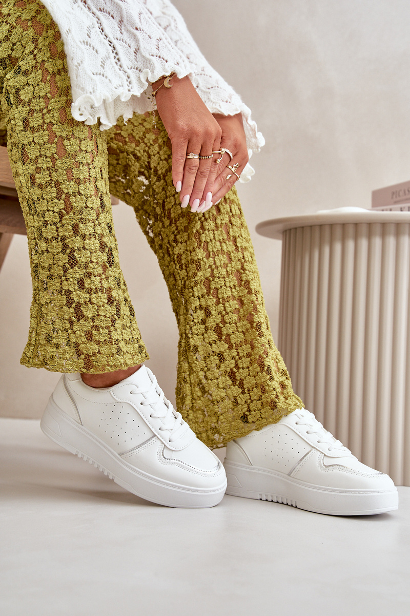 Dámské Tenisky Na Platformě S Dekorativním Šněrováním Bílé Mistra