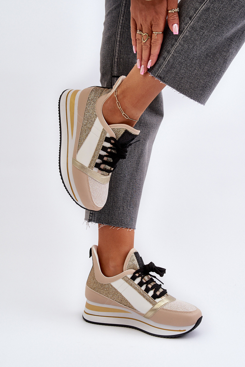 Dámské tenisky na podpatku a platformě s flitrem zlaté Rafani