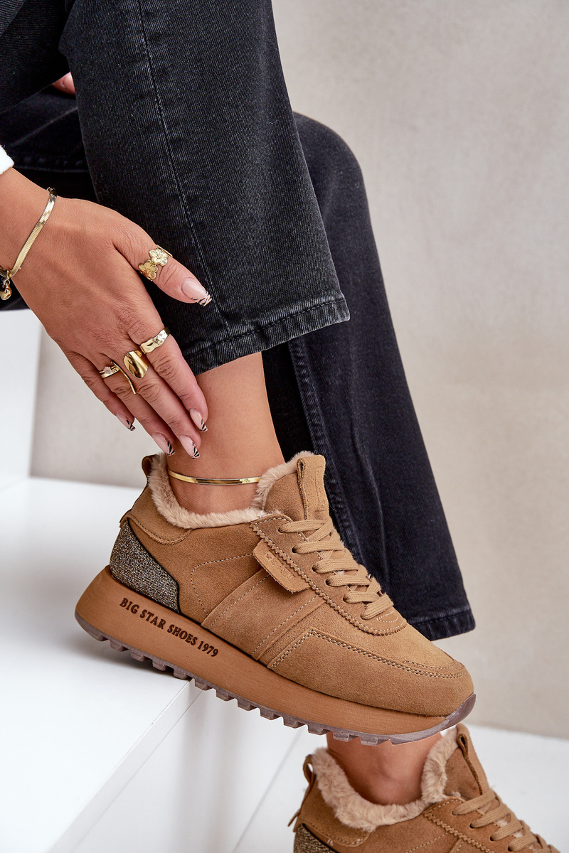 Dámské Tenisky S Kožíškem A Lesklým Elementem Big Star OO274578 Hi-Poly System Camel
