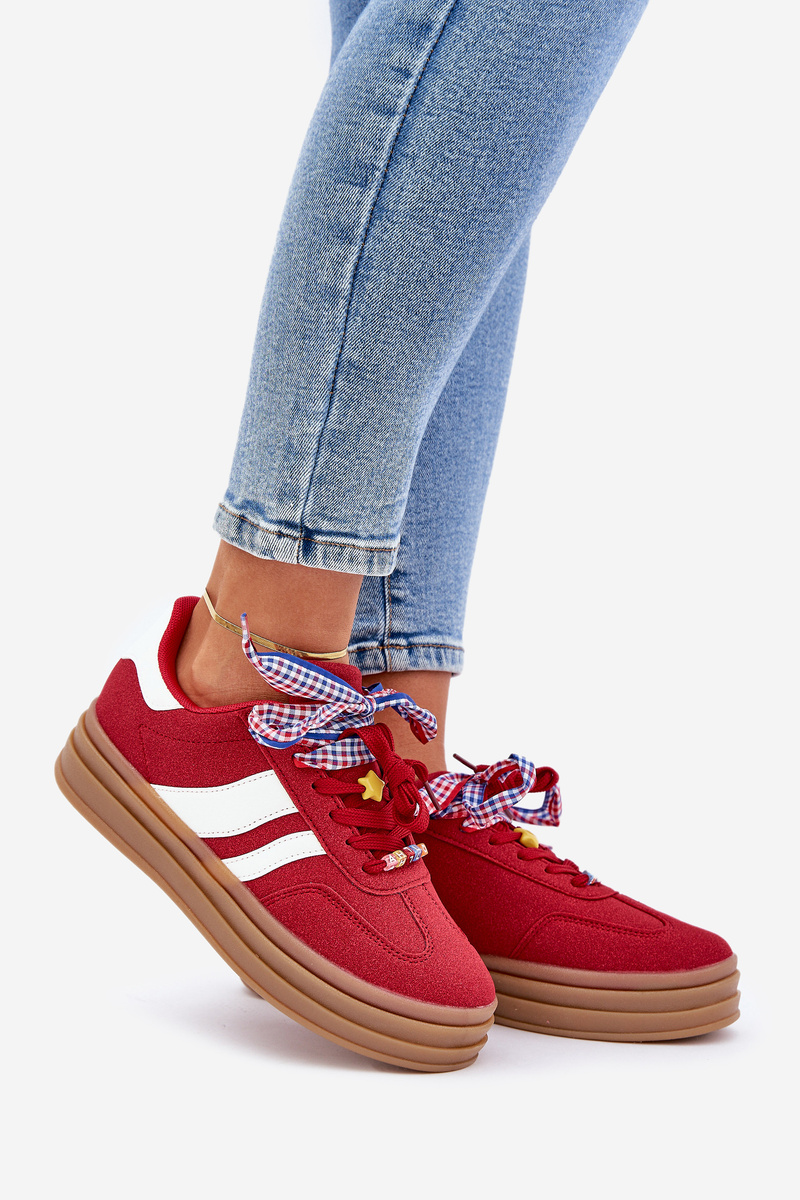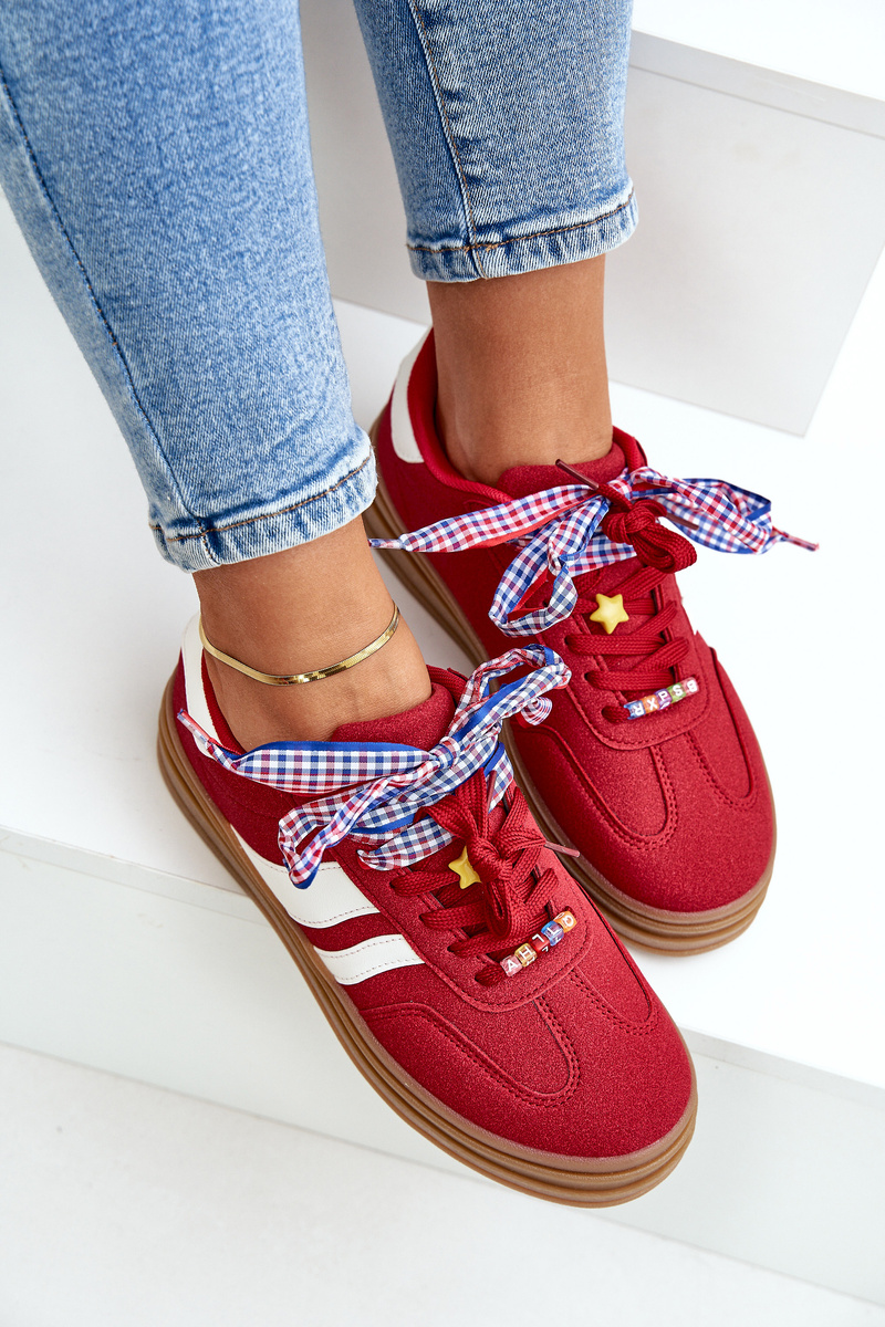 Módní sneakersy vyrobené z eko semiše jsou skvělým návrhem pro milovnice pohodlí a stylového vzhledu. Uložené na platformě, nejenže přidávají několik centimetrů na výšce, ale také dokonale podtrhují moderní charakter obuvi. Šněrování bylo obohaceno o roztomilé odznaky, které dodávají dívčímu kouzlu a originalitě. Ideálně se hodí jak do každodenních outfitů, tak na setkání s přáteli. Při výběru velikosti se řiďte tabulkou velikostí.