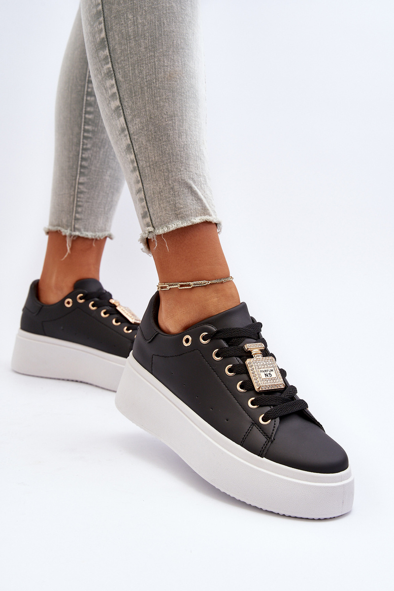 Dámské sportovní boty jsou vyrobeny z ekologické kůže. Umístěné na platformě. Tento model je klasicky šněrován. Skvěle poslouží jako každodenní obuv do práce nebo školy. Vložka z pěny se postará o váš komfort. Na tkaničkách ozdoba v podobě parfému. Tento model by měl být ve vaší skříni! Při výběru velikosti se řiďte tabulkou velikostí.