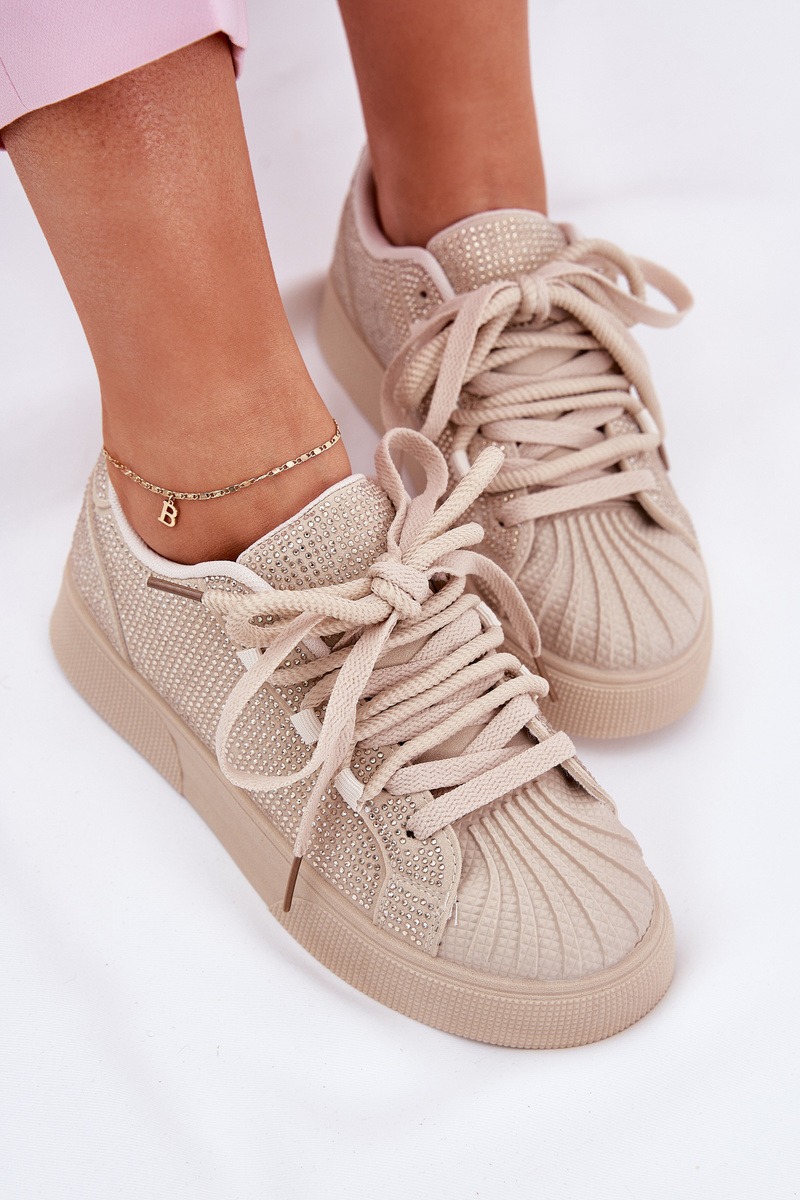 Dámské tenisky se zdobením na platformě béžové Eanneth