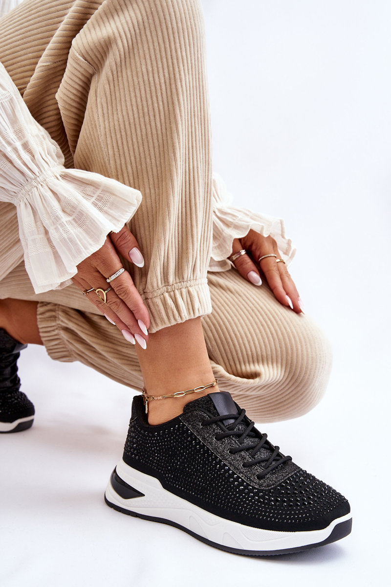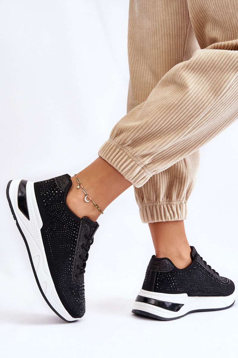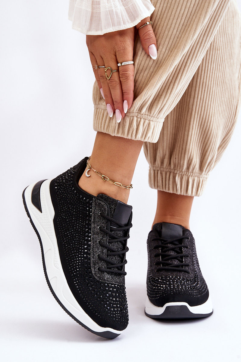 Klasická, dámská sportovní obuv je vyrobena z textilního materiálu. Navíc mají zdobení v podobě kamínků imitujících zirkony. Byly umístěny na plošině. Tento model má klasické šněrování. Měkká vložka z materiálu zajistí pohodlí při používání. Rozhodně byste je měli mít! Při výběru velikosti se řiďte tabulkou velikostí.