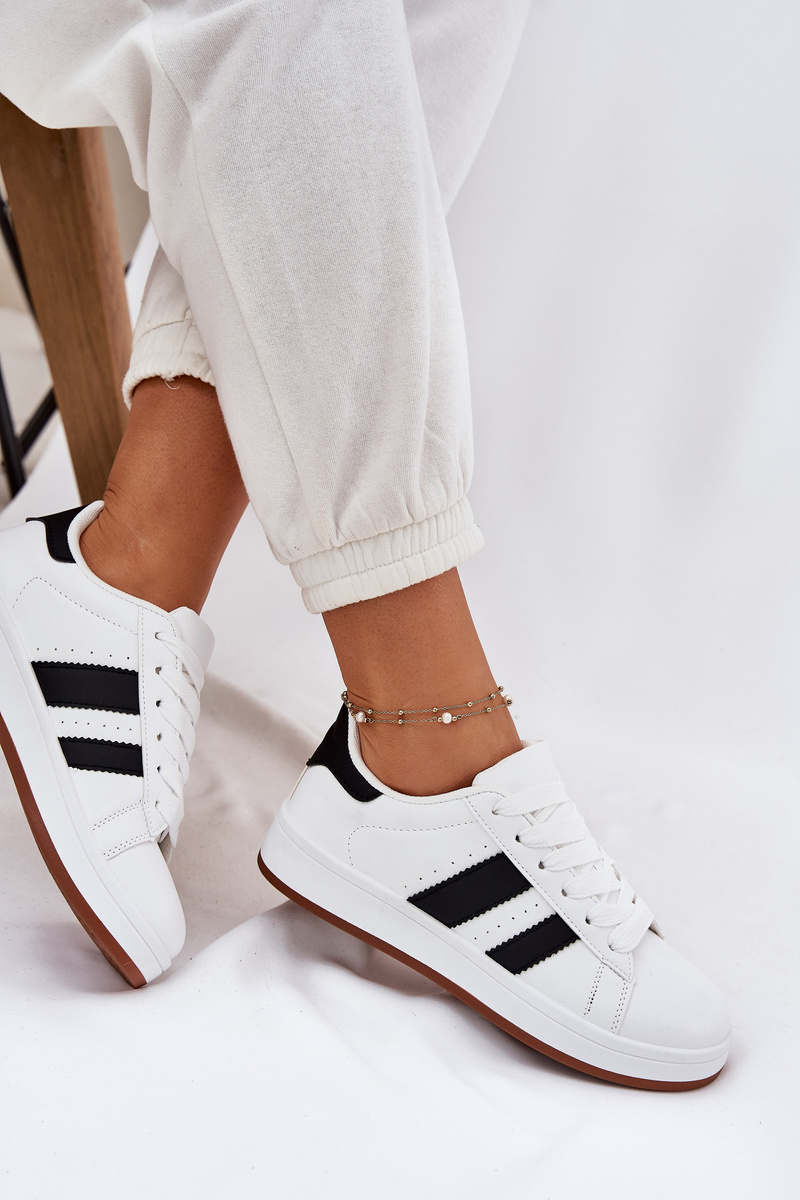 Dámské sneakersy z eko kůže se vyznačují širokými, zaoblenými špičkami. Vyjímatelná stélka vyrobená z pěny a potažená materiálem zajišťuje dodateční pohodlí a tlumení. Tyto módní sneakersy jsou ideální volbou pro každodenní outfity. Při výběru velikosti se řiďte tabulkou velikostí.