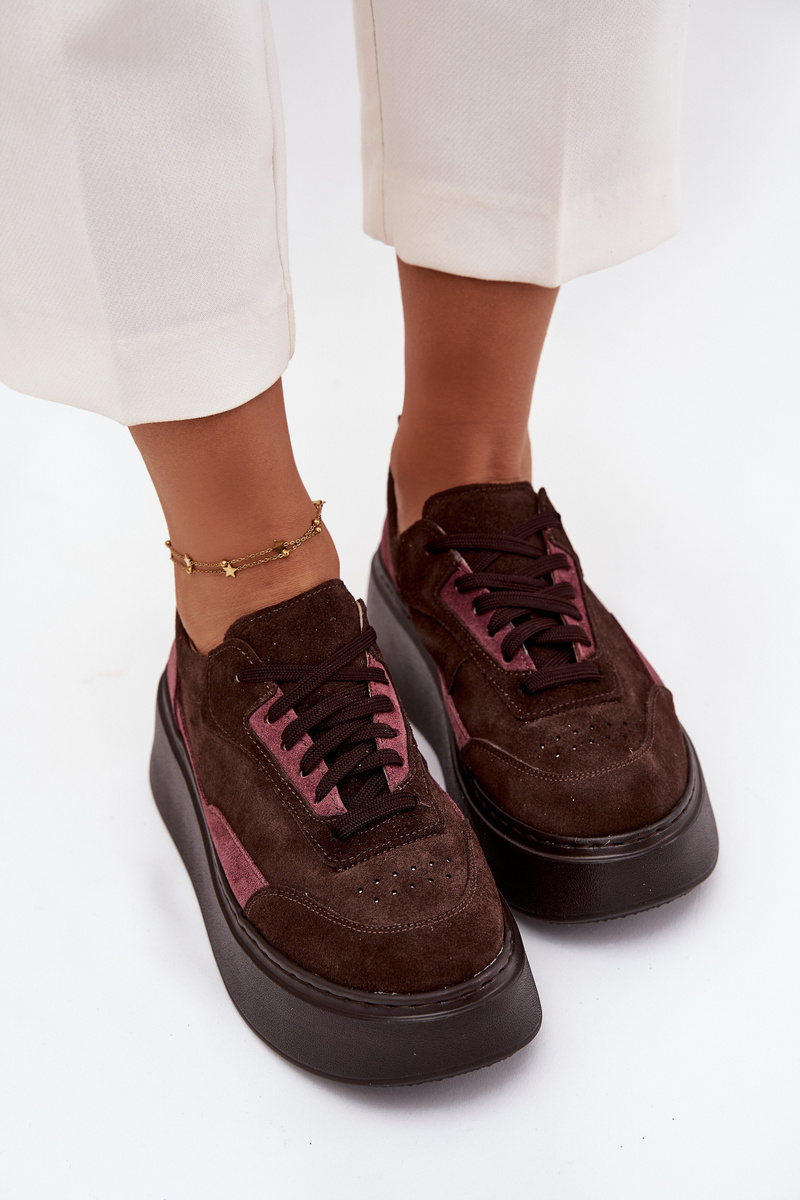 Dámské tenisky z pravé semiše na platformě Zazoo N1265S3 čokoládové
