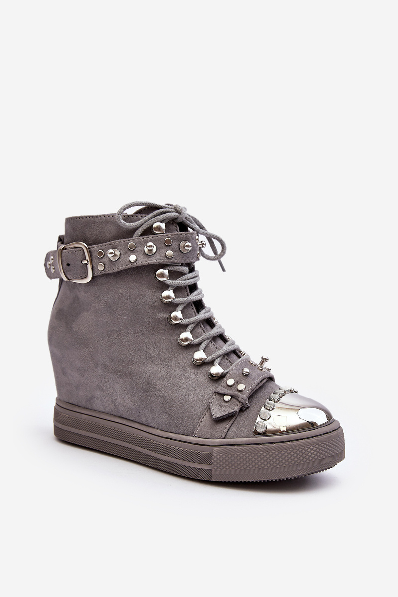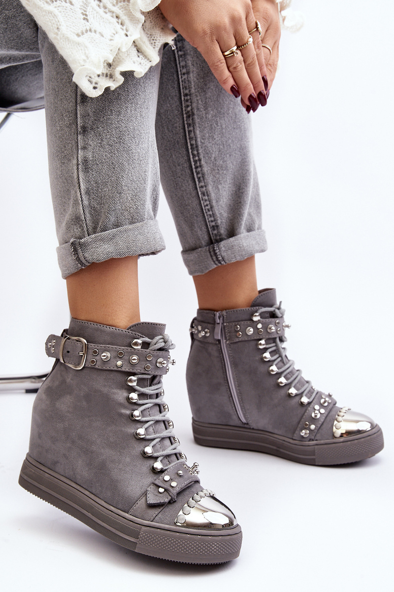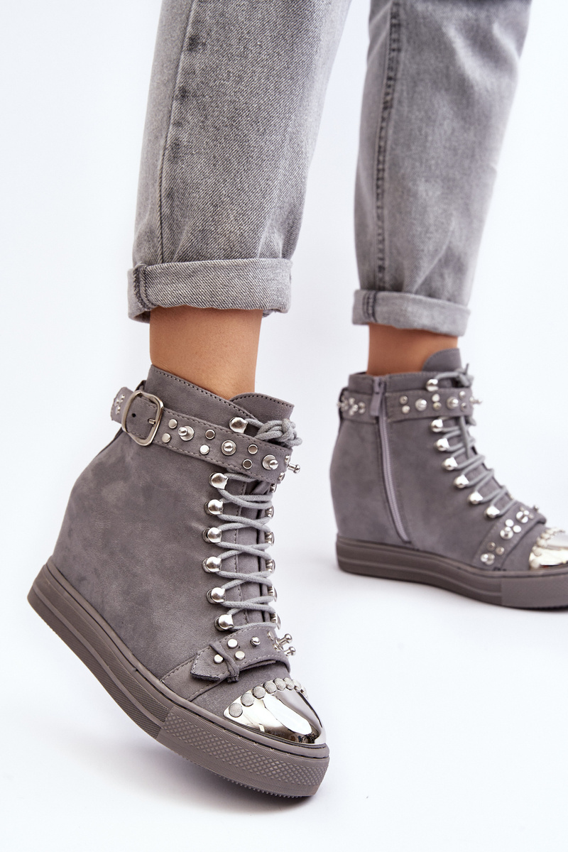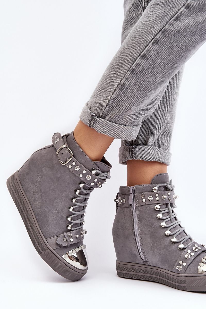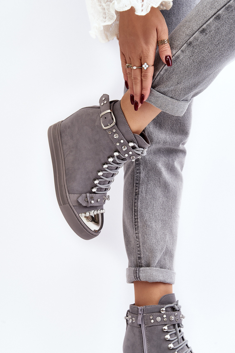 Výjimečné boty na klínku s flitry a sponami. Boty jsou vyrobeny z ekologického semiše a mají zateplení ve formě obuvnické deky. Botky skvěle zapadnou do glam rockových nebo grunge stylů. Určitě si prohlédněte celou naši kolekci dámských botků! Při výběru velikosti se řiďte tabulkou velikostí.