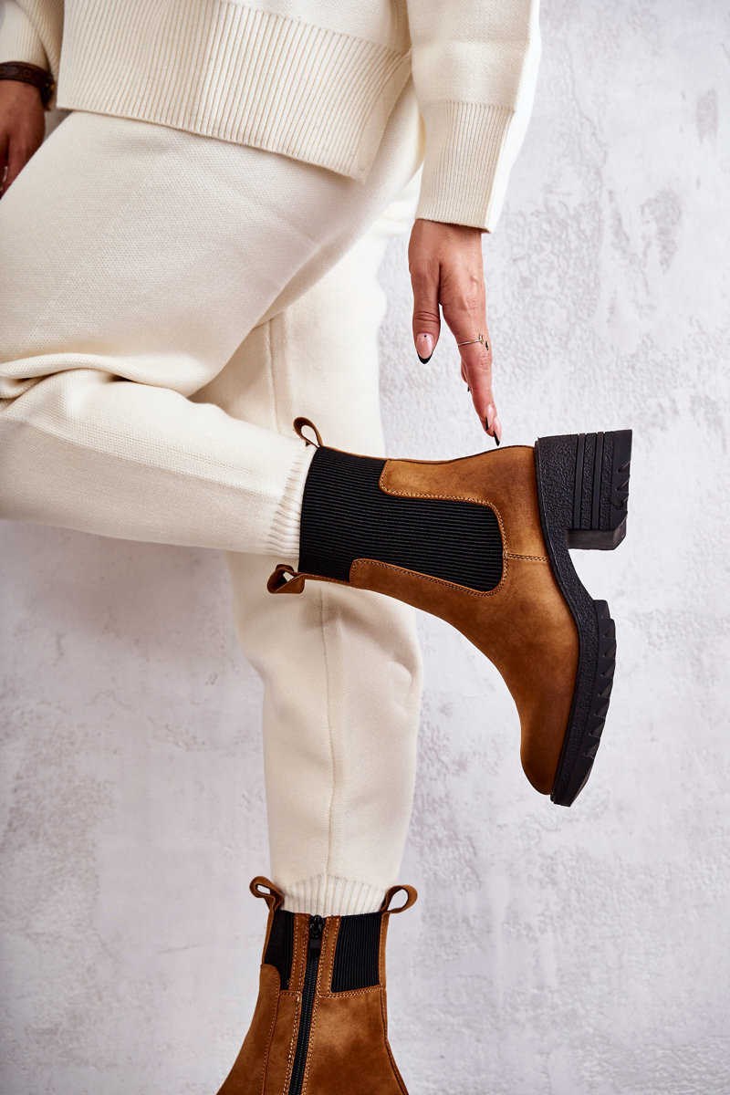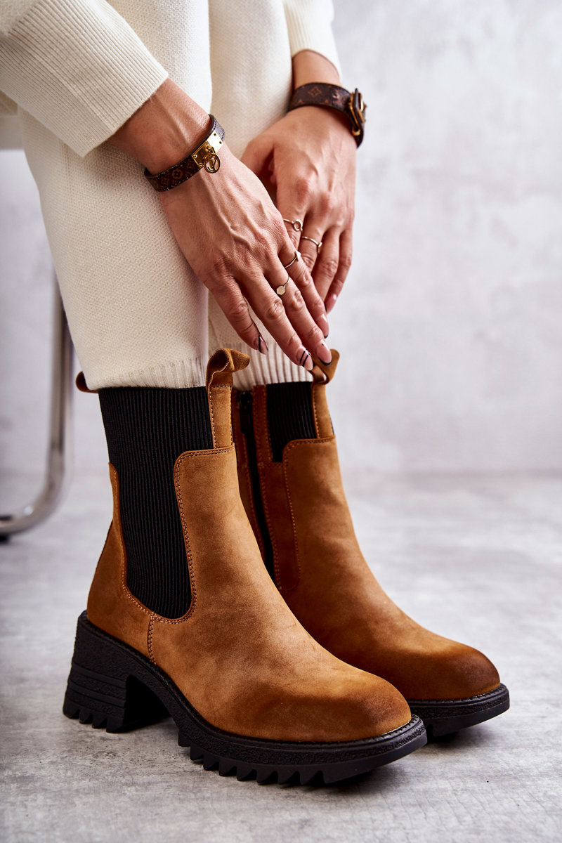 Dámské kozačky jsou vyrobeny z eko kůže. Mají izolaci v podobě přikrývky na obuv. Svršky na zip se zapínají na boku. Nasazené na platformě a podpatku v podobě masivního sloupku s drážkami. Podpatek v těchto botách je vyztužený. Boty mají hranatou špičku. V horní části svršku jsou poutka pro snadnější obouvání a vyzouvání. Při výběru velikosti použijte tabulku velikostí.