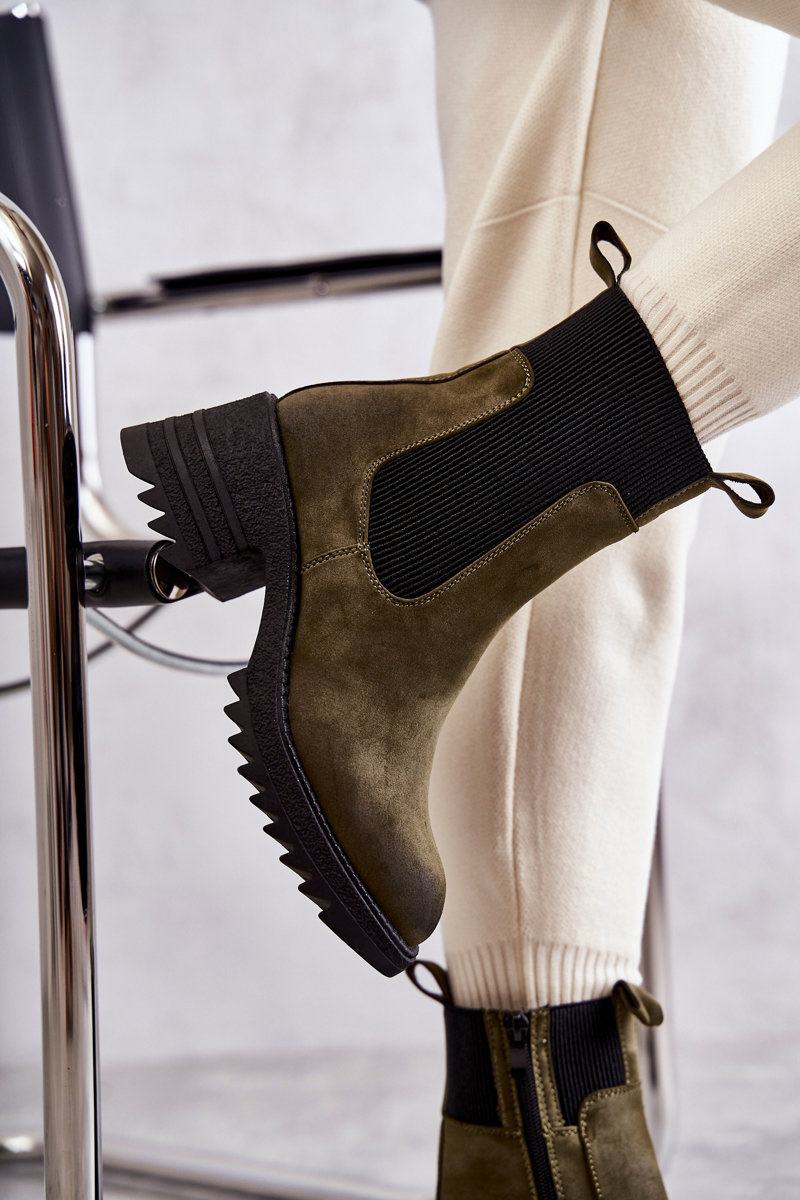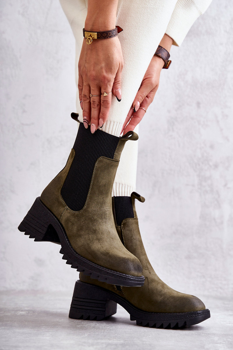 Dámské teplé kozačky na podpatku zelené Abella