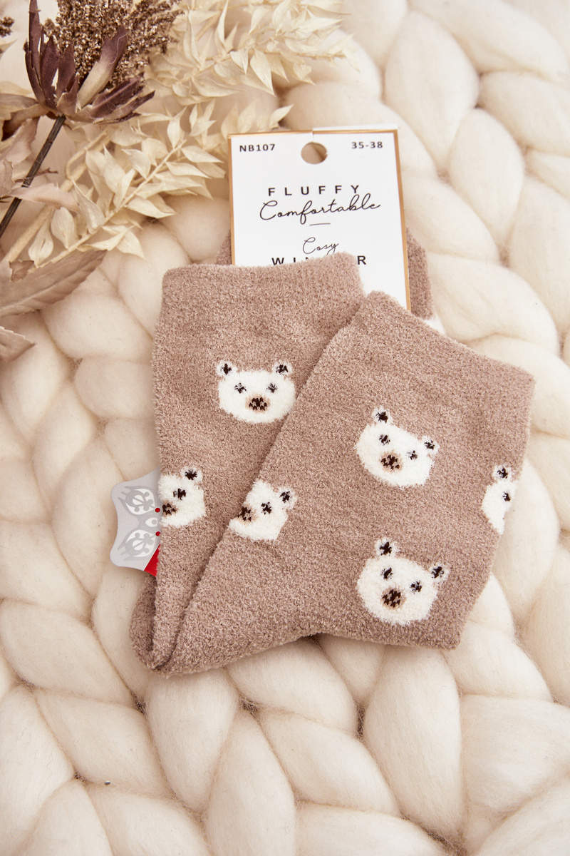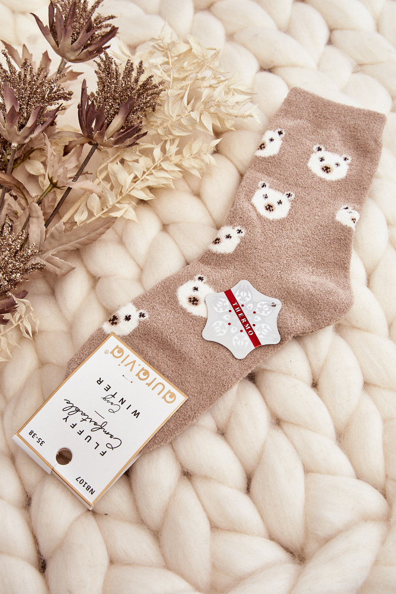 Dámské Teplé Ponožky V Puntíkách S Medvídkem Beige