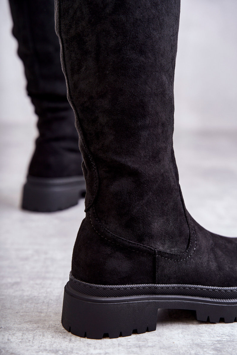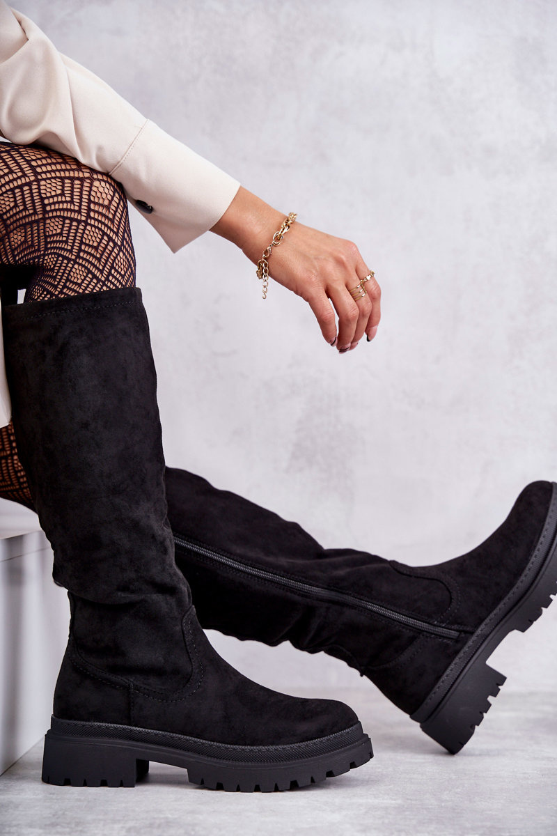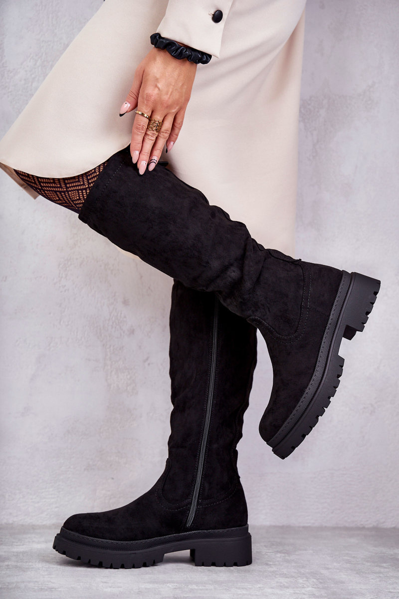 Dámské kozačky jsou vyrobeny z vysoce kvalitních materiálů ekokůže. Mají zip po celé délce svršku a vyztuženou patu. Nasazené na plochém podpatku s protiskluzovou podrážkou. Model v délce ke kolenům se zateplením v podobě deky na boty. Klasický střih bude perfektní pro mnoho stylů! Při výběru velikosti použijte tabulku velikostí.