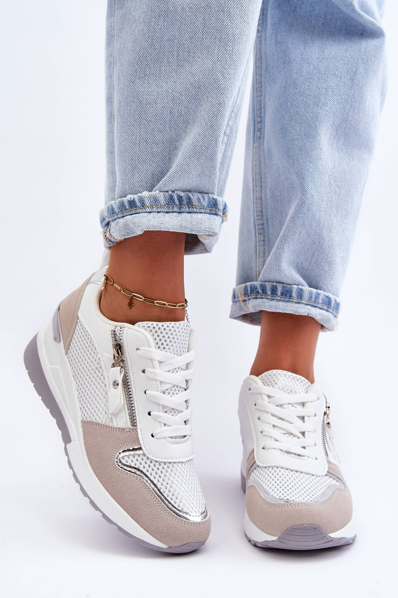 Dámské tenisky jsou umístěny na klínové podrážce a platformě. Vyrobeno z kombinace eko kůže a textilního materiálu. Tento model má zrcadlové vložky a zip. Měkká textilní vložka zajistí pohodlné nošení obuvi. Ideální pro mnoho stylů! Při výběru velikosti se řiďte tabulkou velikostí.