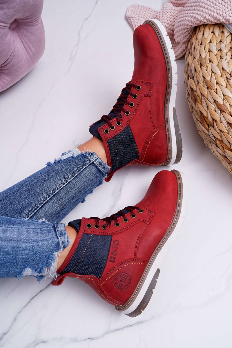Dámské Traperky Big Star Kožené Burgundy EE274006