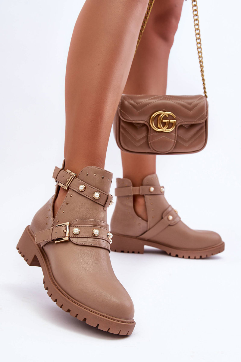 Dámské Trapery Botky s Perlami Bežová Klarisa