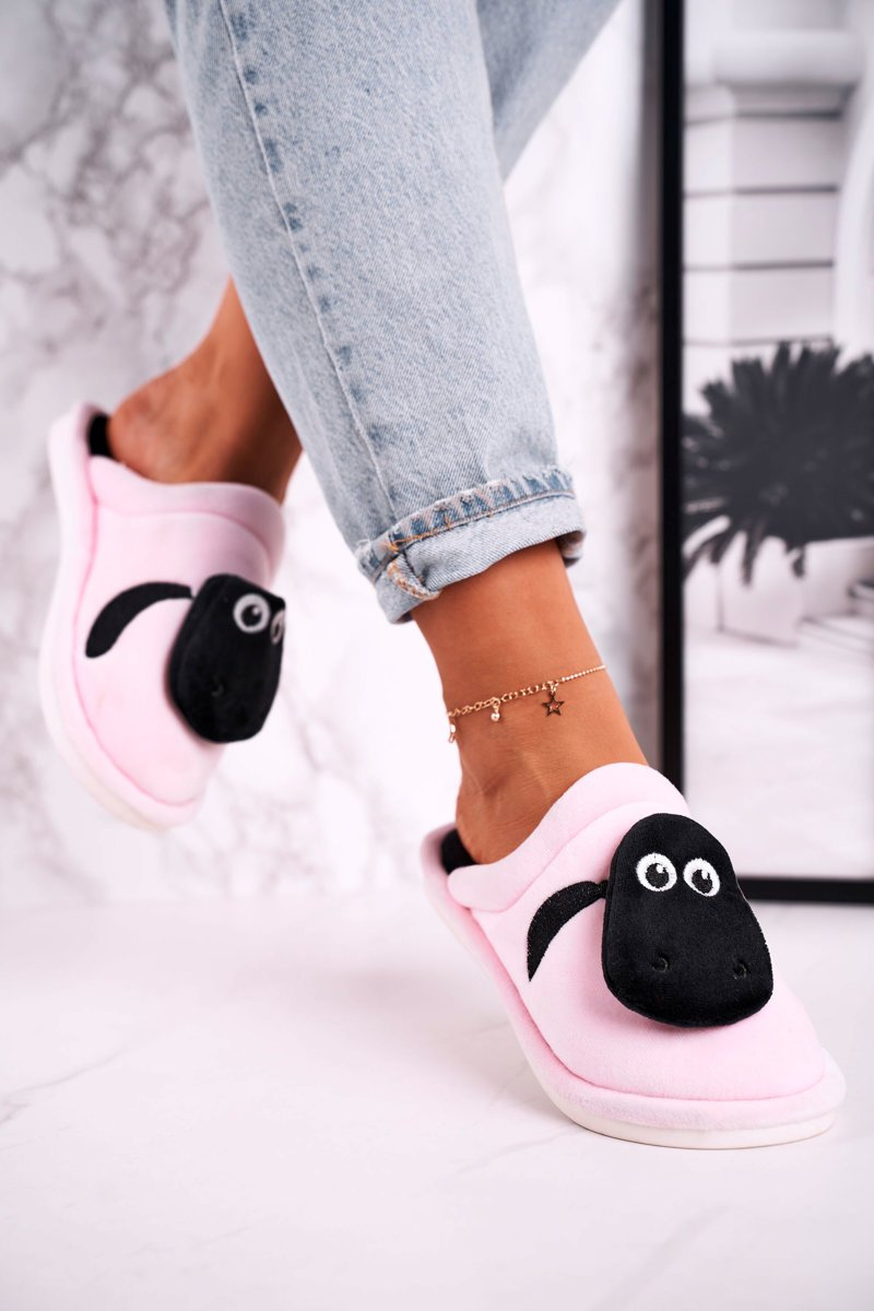 Dámské Velurové Pantofle S Ovcemi Světle Růžove Charlie