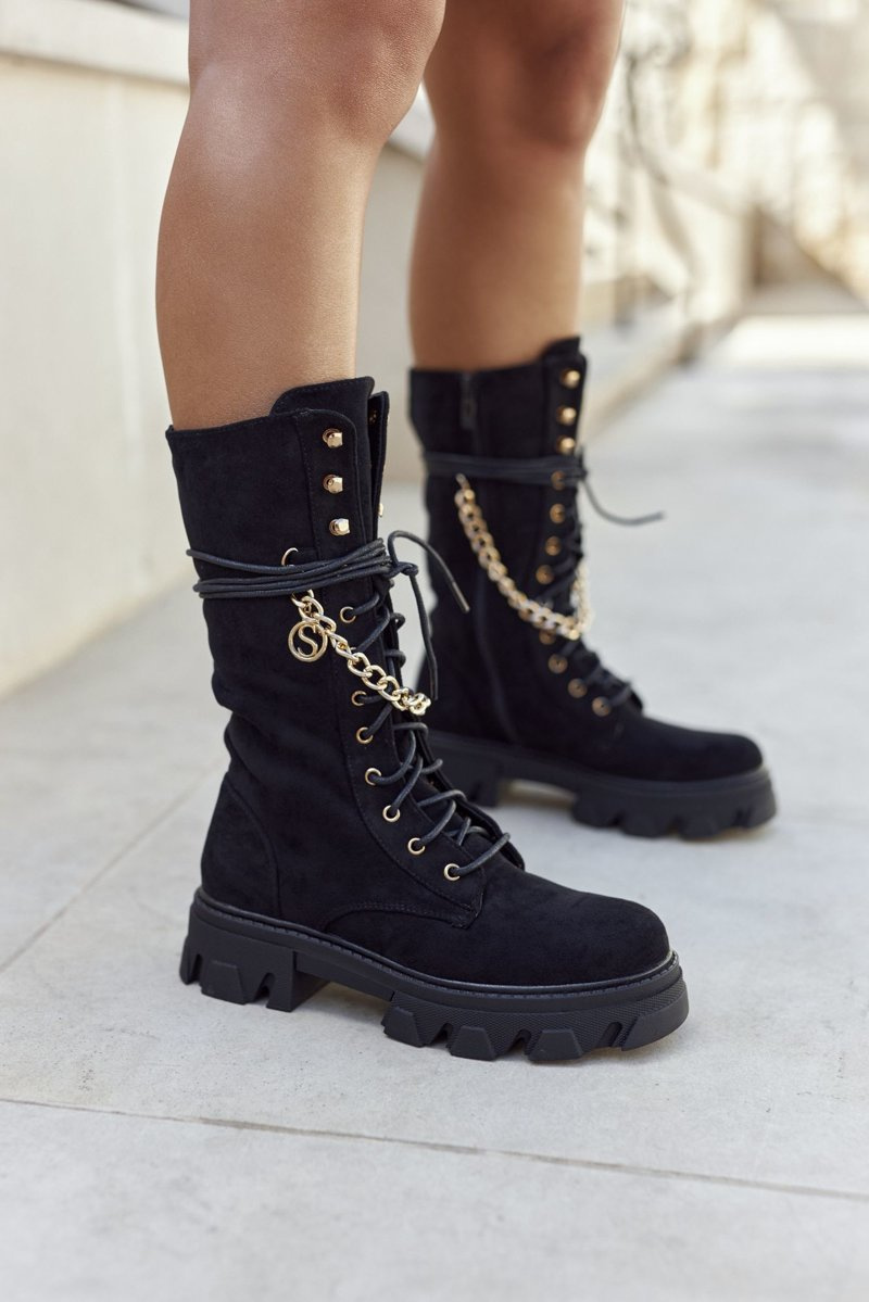Skvělé boty, které mohou být vaše! Vysoký svršek zateplený uvnitř přikrývkou na boty zaručuje pohodlí i v těch nejchladnějších dnech. Zip na boku usnadňuje obouvání a dokonalé padnutí zajišťuje pevné šněrování. Krásná ozdoba v podobě zlatého řetízku. Silná protiskluzová podrážka poskytuje dodatečnou ochranu. Při výběru velikosti se prosím řiďte tabulkou velikostí