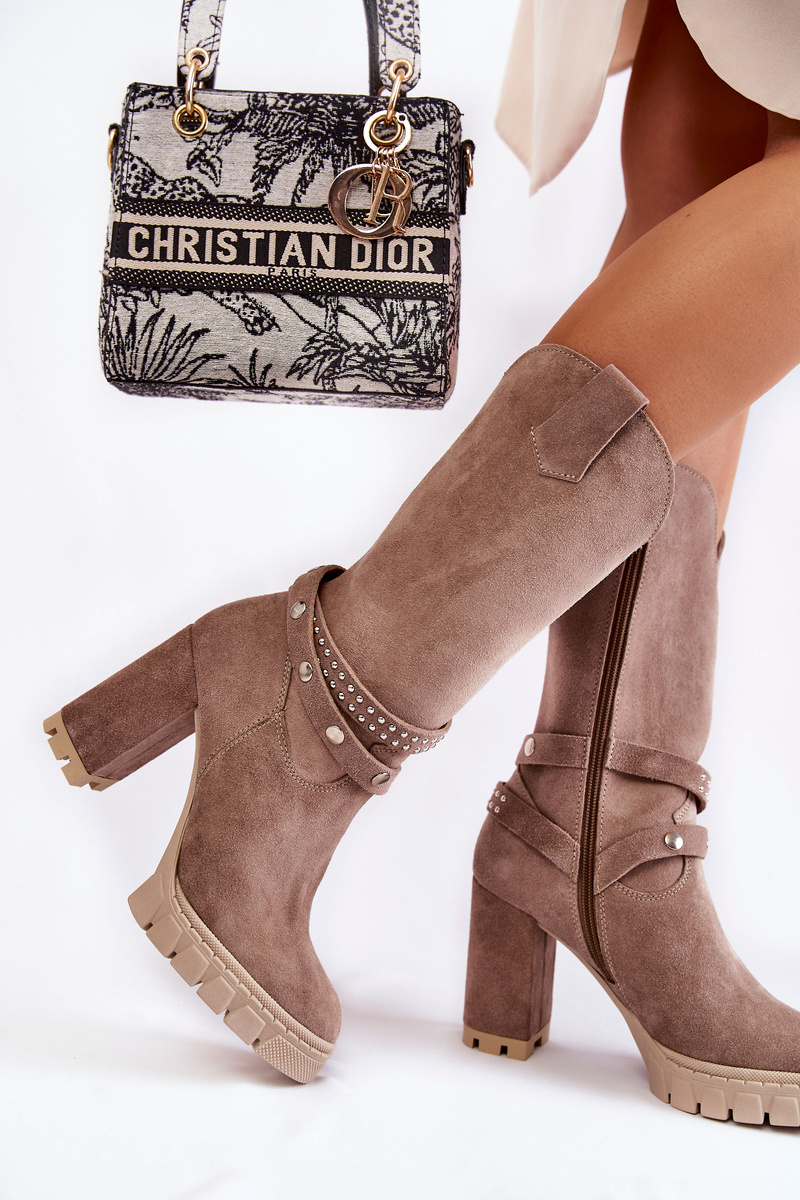 Dámské vysoké kozačky na vysokém podpatku Lewski Shoes 3246 Cappucino