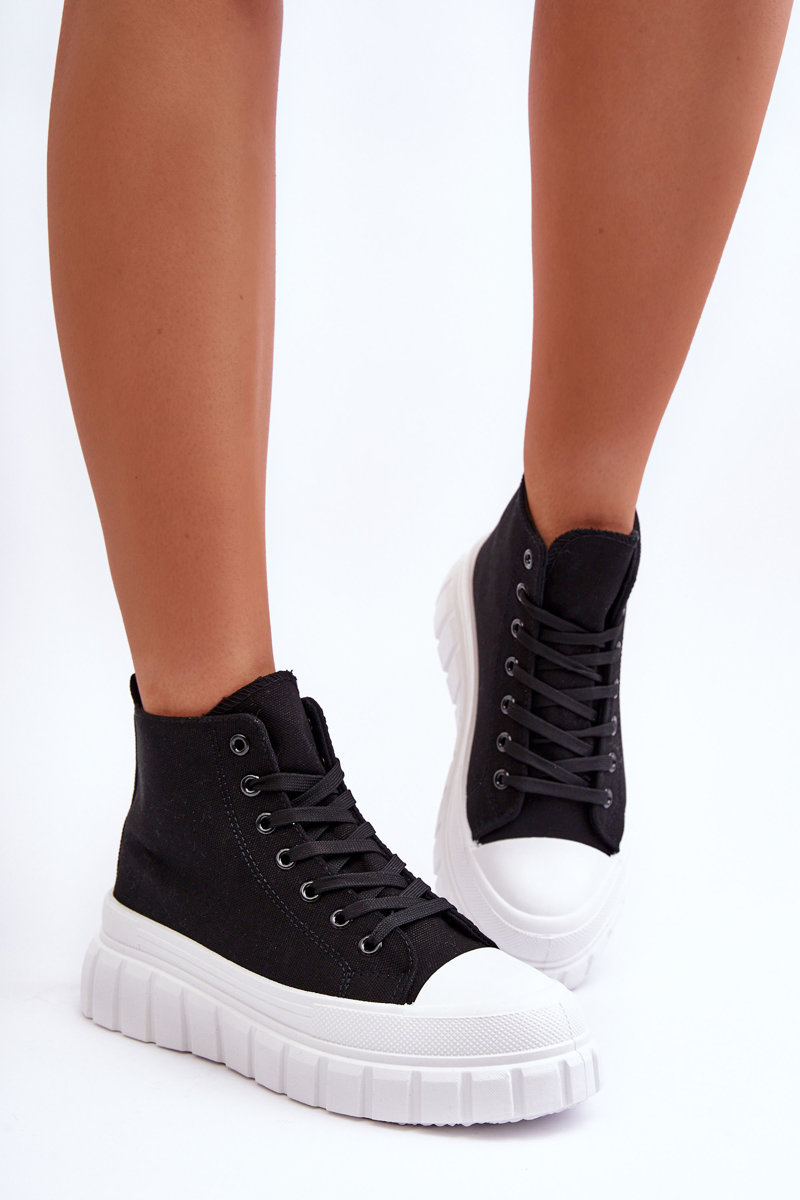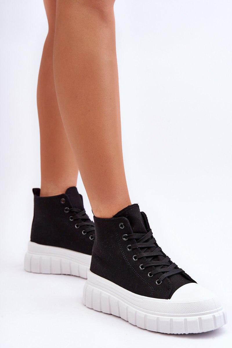 Dámské klasické tenisky s kotníkovou střihovou částí jsou vyrobeny z textilního materiálu. Mají šněrování, které umožňuje přizpůsobit obuv tloušťce nohy. jsou osazeny na podrážce z umělého materiálu. Špička je posílena gumovým materiálem. Pohodlná textilní vložka zajistí pohodlí při nošení. Při výběru velikosti se řiďte tabulkou velikostí.