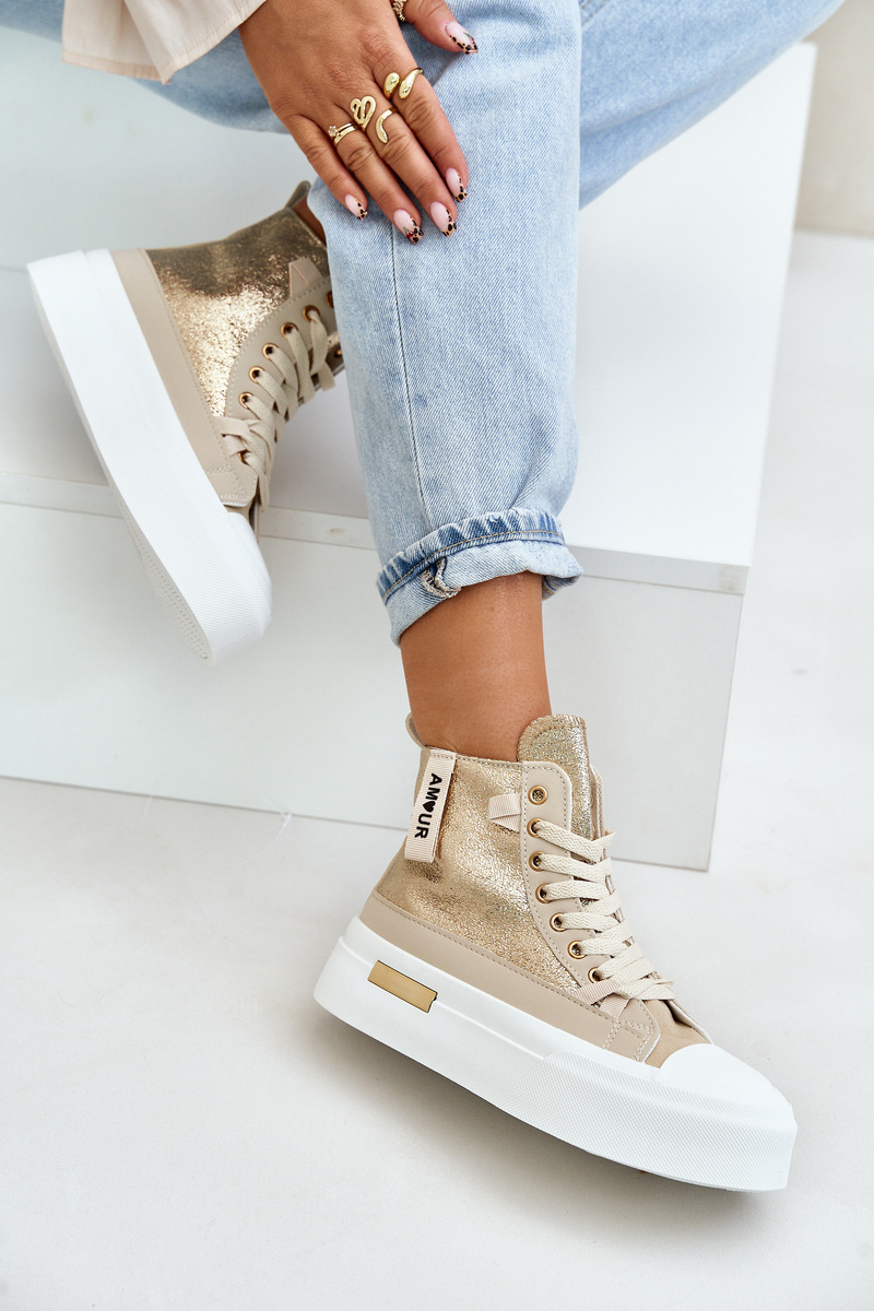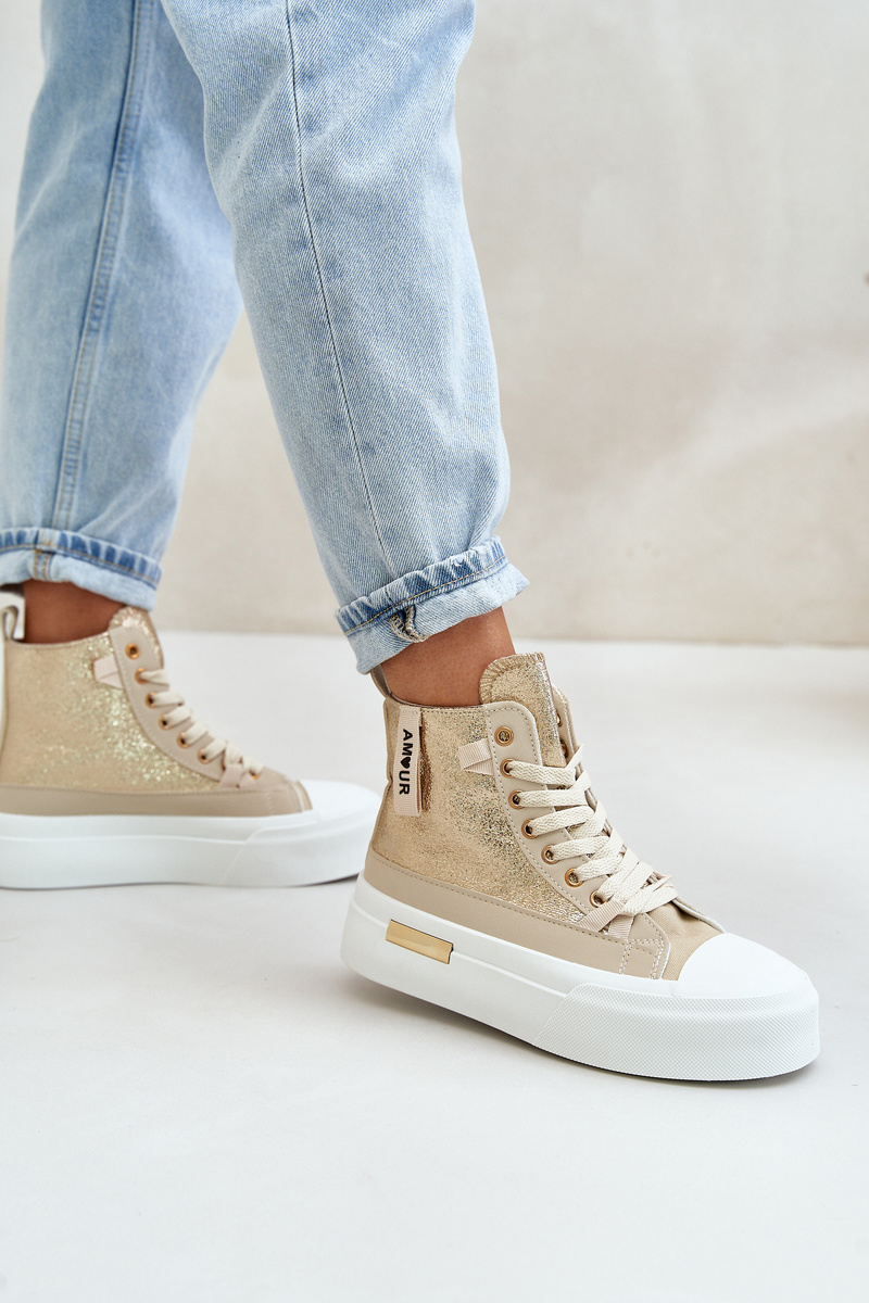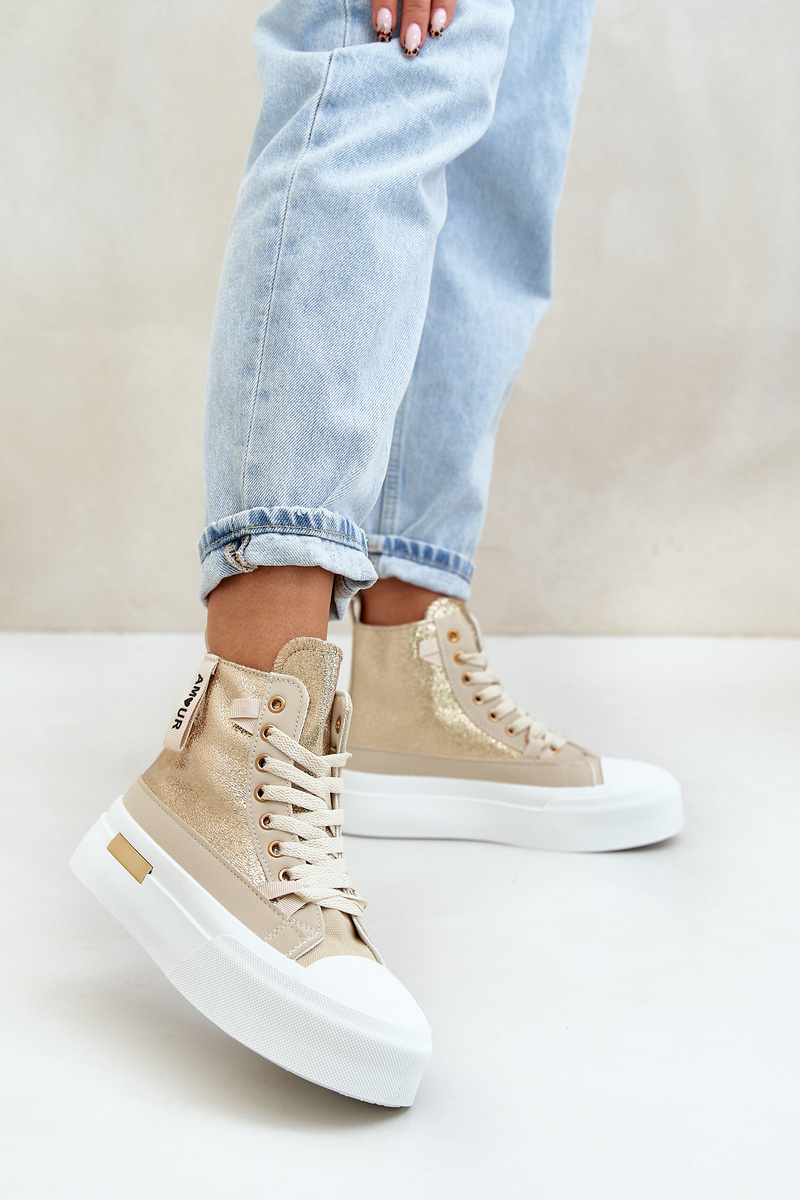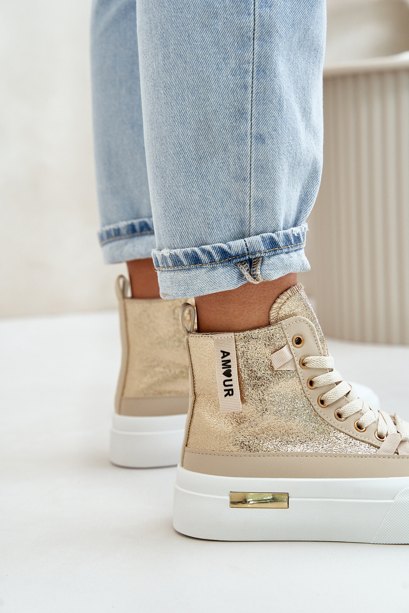 Dámské Vysoké Tenisky Na Platformě Béžovo-Zlaté Averira