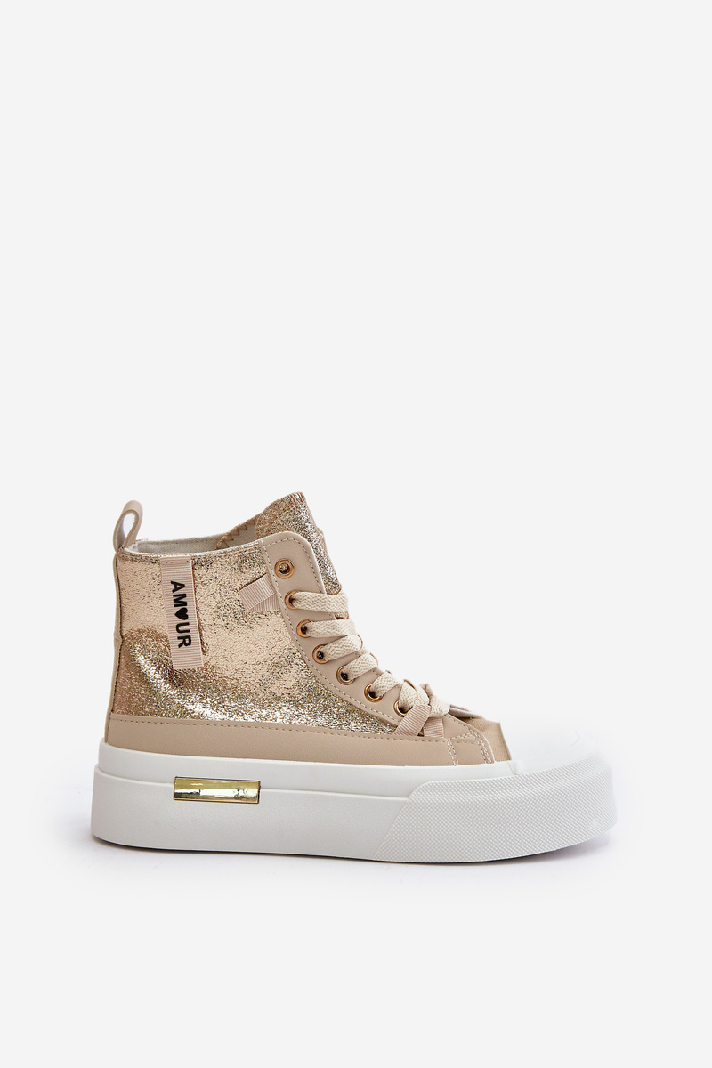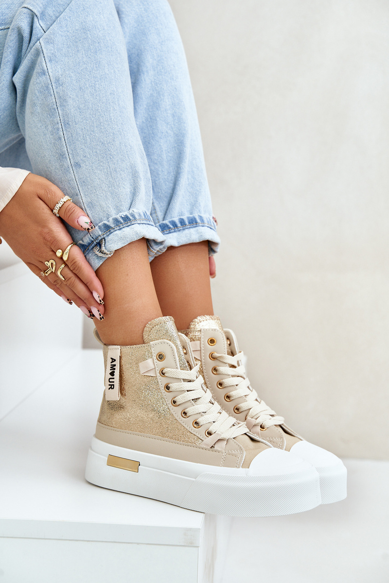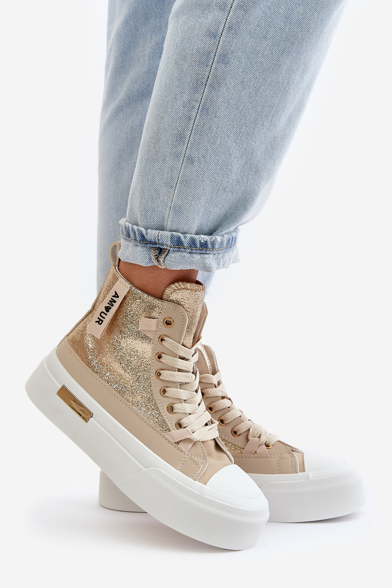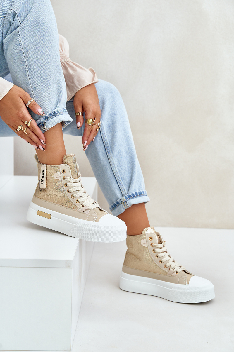 Dámské Vysoké Tenisky Na Platformě Béžovo-Zlaté Averira