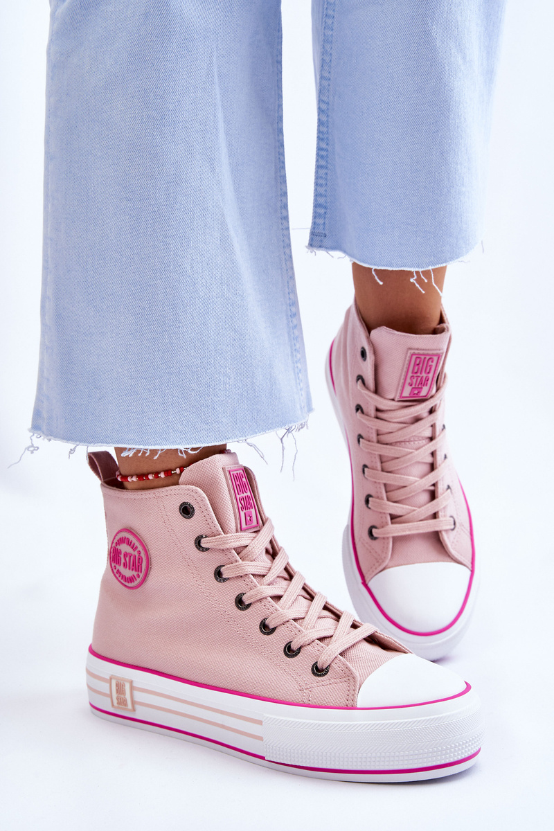 Dámské vysoké textilní tenisky na platformě Big Star LL274186 Růžová