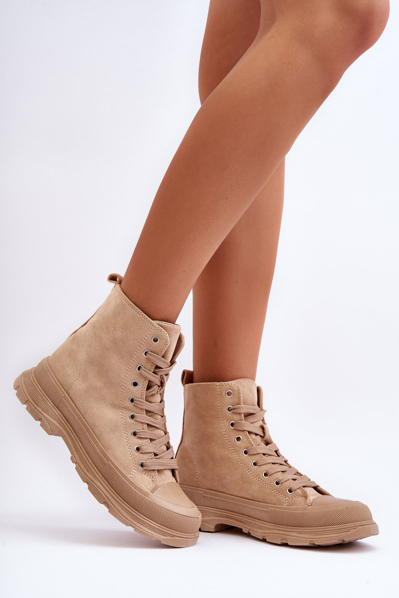 Módní vysoké tenisky žen vyrobené z ekologického semiše. Tento model je umístěn na masivní platformě. Boty mají klasické šněrování a zaoblený nos. Módní střih znamená, že je můžete kombinovat do různých stylů. Musíte je mít! Při výběru velikosti se řiďte tabulkou velikostí.